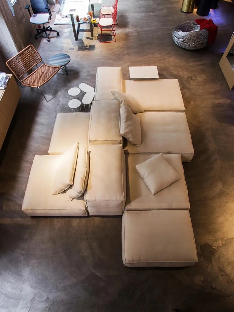 スティロランのラグジュアリー軽量ダウンレザーソファー - シンプルで洗練されたイタリアンスタイルの本革アーチソファ、贅沢な客間にぴったりです。