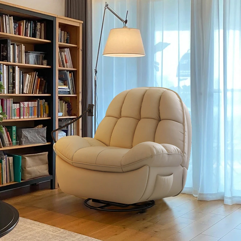 スティロランのラウンドレザーソファ - 高級感溢れる本革使用、贅沢なリビング空間を演出する一級牛革ソファ。快適さとスタイルを両立した、あなたのための理想的な選択。