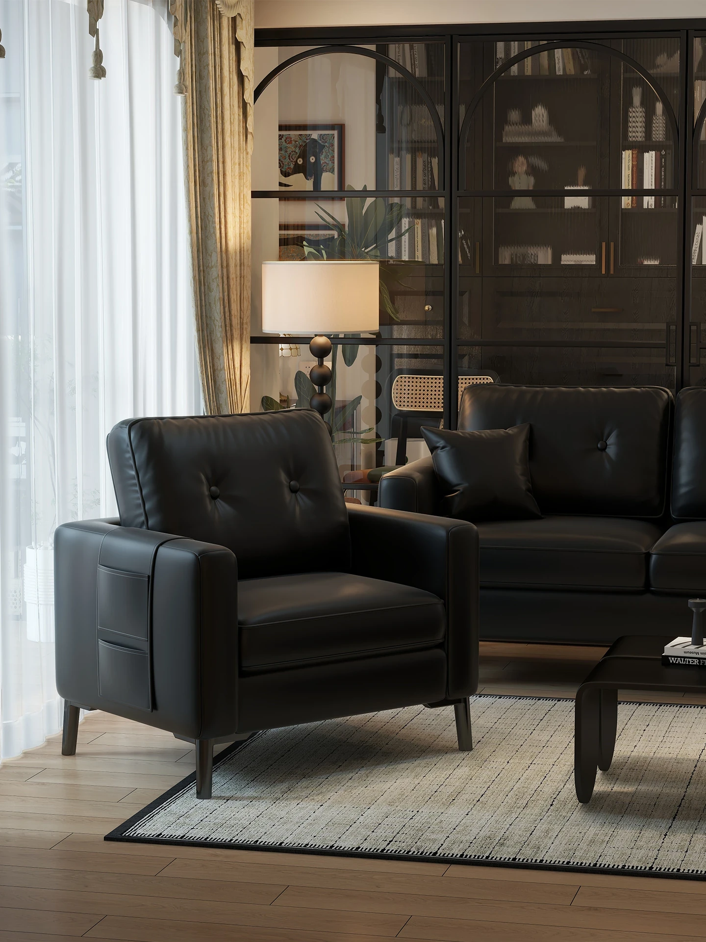 ビジネスに最適!高級ゲスト用会議ソファセット - オフィス休憩エリア、リーダーとの商談にぴったりな一人用ソファとテーブルの組み合わせ。快適さとスタイルを兼ね備えたアイテムで、上質な時間を演出します。