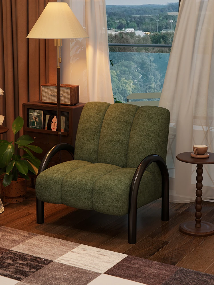 ヴィンテージ風ファブリックデザインの一人掛けソファ椅子 - レトロなリビングやバルコニーにぴったりの、リラックスできるバックレスト付きのカジュアルチェア。おしゃれな空間を演出し、くつろぎのひとときを提供します!
