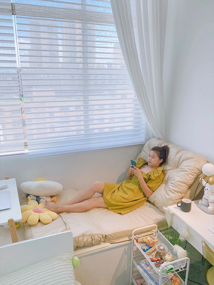 楽々リラックス!寝転びもできる単人用ソファ、タタミスタイルの小型豆袋ソファ。狭い部屋やバルコニーにぴったりな、快適な座り心地を提供します。あなたのリラックスタイムをもっと特別に!