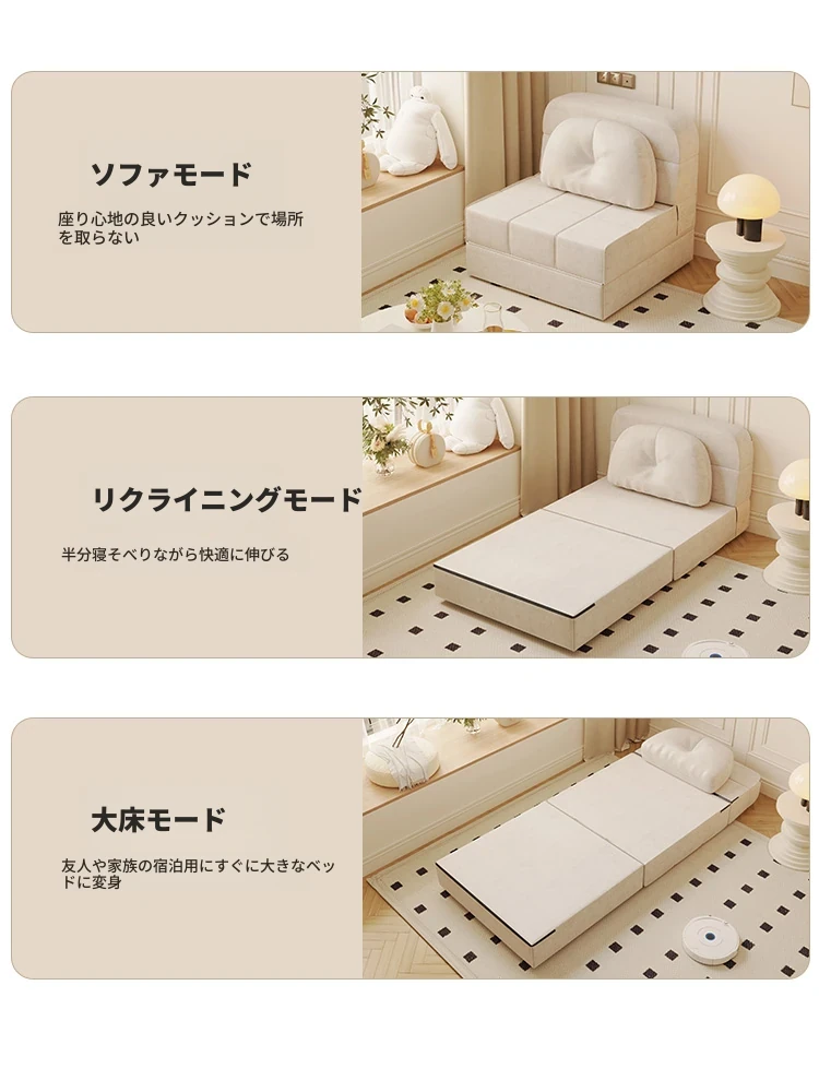 折りたたみ式雲のような多機能ソファ|モダンでシンプルなデザインのリビング用ソファベッド|小スペースでも使えるおしゃれなクリームカラー|インフルエンサー推奨のトレンドアイテム!