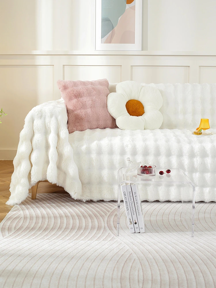 秋冬新作!ふわふわウサギ毛ソファカバー - 猫の爪から守る全包タイプ!滑らかな肌触りで、毛が抜けにくい厚手クッション。おしゃれで快適なリビングを演出します。