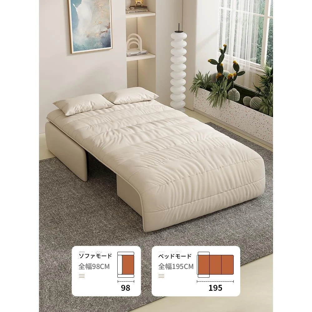 折りたたみ式ソファベッド【多機能・コンパクト設計】小さなリビングにも最適!スライド&ストレッチでシングル・ダブル両用、収納スペース付きのクリーミーな風合いで、おしゃれな空間を演出します。