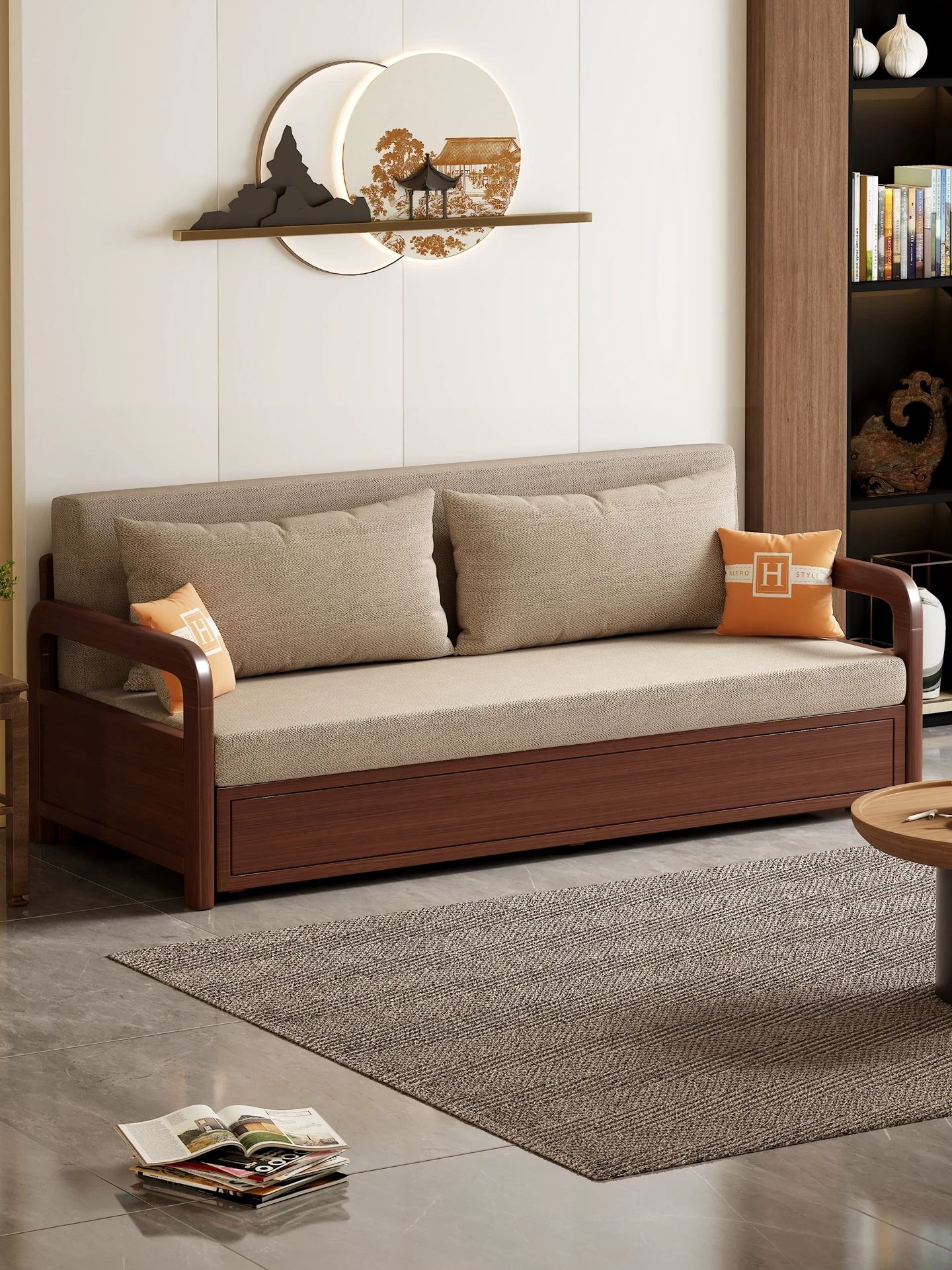 2025年新作!全実木製折りたたみソファベッド - 中華風のリビングにぴったり!小スペース向けの一人用伸縮式ベッドで、スタイリッシュなデザインと機能性を両立。あなたの生活空間をより快適に!