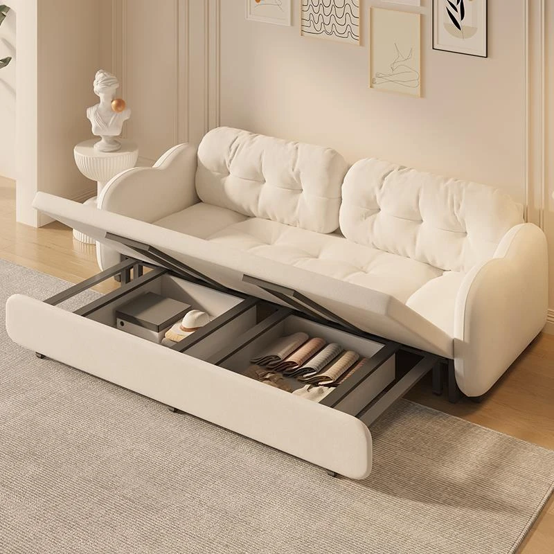 【香港送料無料】2024年新作!クリーミーな雲のようなデザインのソファベッド - 小型アパートに最適なフランス風ダブルソファ!おしゃれで快適なリビング空間を演出します。