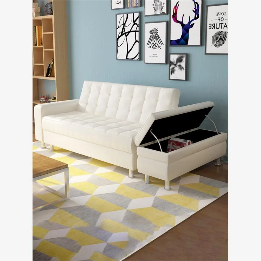 香港送料無料!小型スペースに最適なレザー調収納付きソファ。多機能な二人用折りたたみ式リビング&書斎用カウチベッドで、居心地の良い空間を演出します。