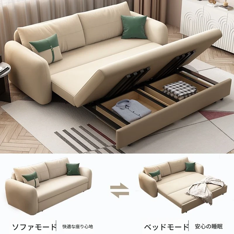 クリーミーな風合いの折りたたみソファベッド 2025年新作 小型住宅向け 多機能ネット人気 ダブル収納ソファで、あなたのリビングをおしゃれに演出!収納力抜群で、スペースを有効活用。