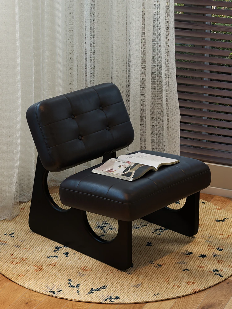 アンティーク風デザインの無垢材一人掛けソファチェア - レトロなオイルワックスレザー仕上げ、リラックスできる背もたれ付き、デザイナーのセンスが光る特別な一脚。おしゃれなインテリアに最適!
