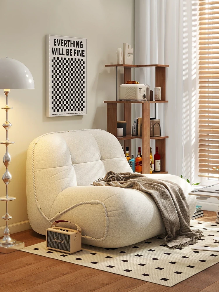 おしゃれで快適な一人用ソファ!小スペースでも大活躍のラウンジソファ。寝室やリビング、バルコニーにぴったり。流行のラムフェルト素材で、リラックスしたひとときを提供します。