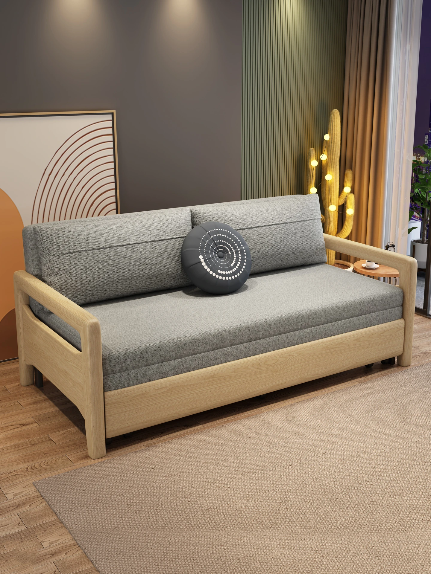 2025年新作!北欧デザインのダブル機能性ソファベッド - 折りたたみ可能な高品質ウッドフレームとテクスチャー布素材で、リビングをスタイリッシュに演出!快適な睡眠とおしゃれな空間を両立!