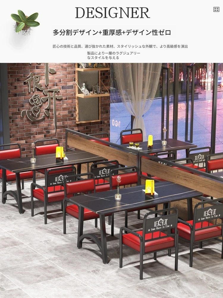 インスタ映えする酒場の工業風テーブル&チェアセット!バーベキューや火鍋、小さな居酒屋に最適な岩板テーブル。おしゃれで機能的なデザインで、あなたの飲食店を一新し、客を引き寄せること間違いなし!