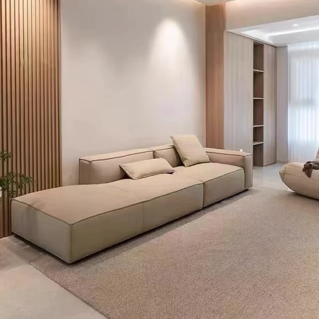 IL Italian Minimalist Tofu Block Sofa Chaise Lounge - Single Armrest, Modern Silicone Leather, Straight-Pile Tech Fabric for a Stylish Living Room