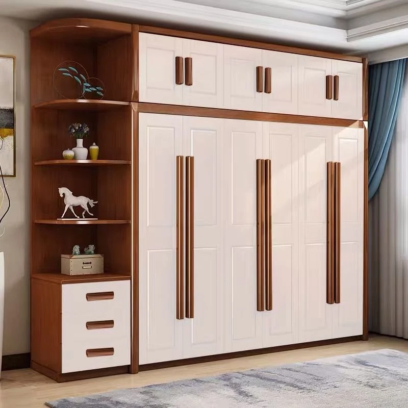 Kafimi Chinese Style Solid Wood Wardrobe - Modern Minimalist Assembly - 3456 Oak Large Closet for Economical Bedroom Solutions