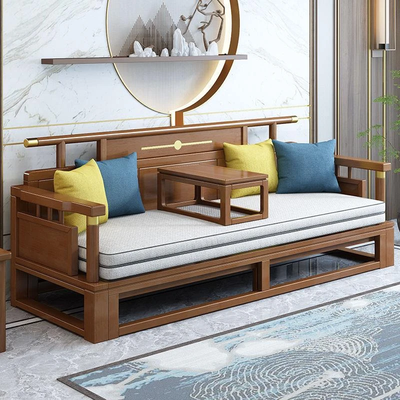 New Chinese Style Solid Wood Luohan Bed - Minimalist Sofa Bed, Folding Dual-Use Design for Small and Large Spaces, Modern Integrated Bed for Living Room