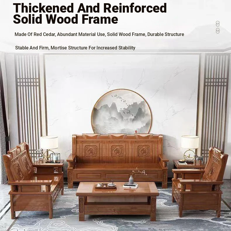 2025 New Classic Chinese Solid Wood Sofa Set - Elegant Minimalist Design with Intricate Carvings for Rural Living Room Furniture