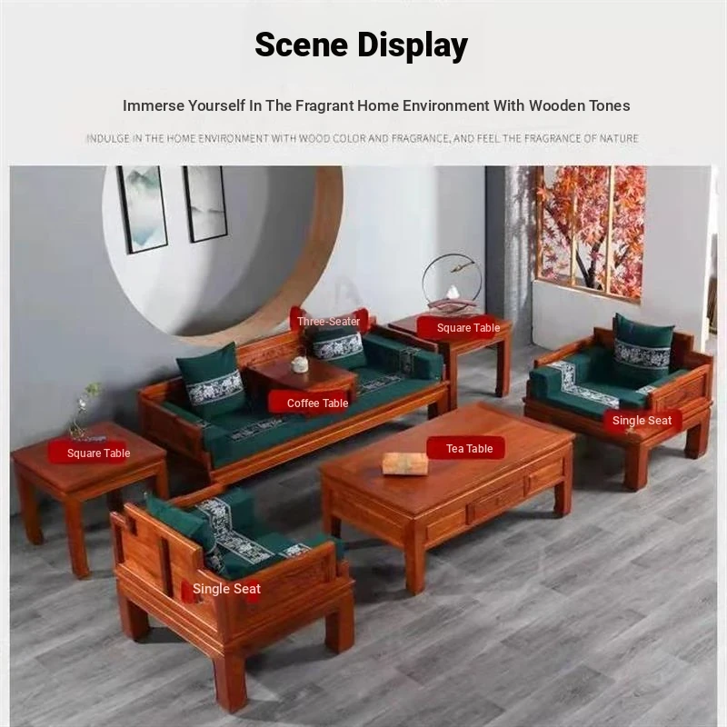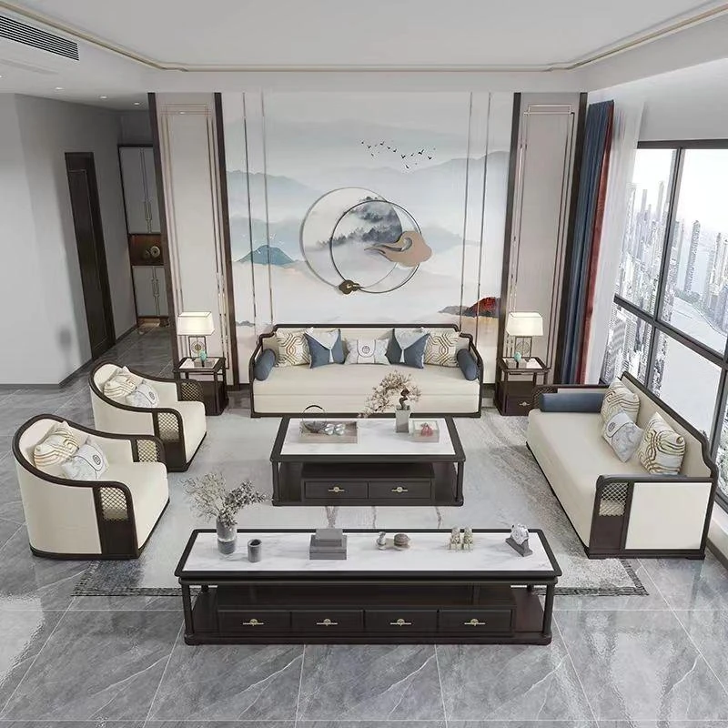 Modern Chinese Style Solid Wood Sofa Set for Spacious Living Rooms - Zen-Inspired, Light Luxury Furniture with Contemporary Minimalist Design