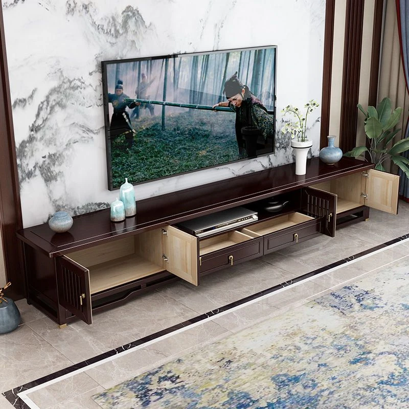 Elegant New Chinese Style Solid Wood TV Cabinet Set for Home - Floor-standing, Perfect for Any Size Living Room, Complete Combination for a Stylish and Functional Entertainment Center.