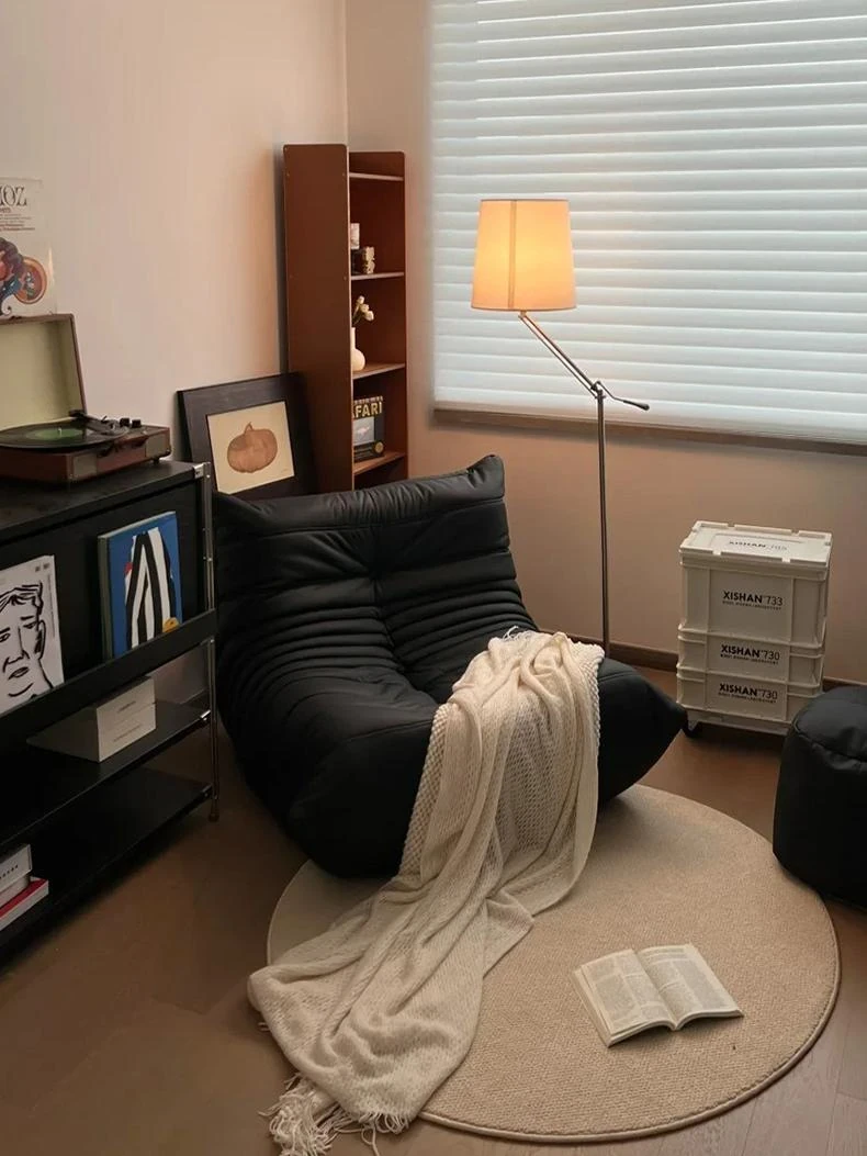 Black Caterpillar Lazy Sofa Chair - Trendy Single Sofa for Balcony & Bedroom, Versatile Design for Relaxing, Lounging, and Sleeping on Tatami. Perfect for Small Spaces!
