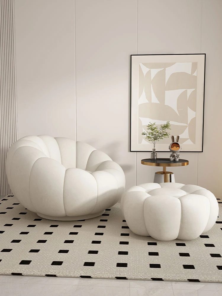 Cozy Pumpkin Shaped Sofa Chair for Small Spaces - Perfect for Living Room, Balcony, and Bedroom - Stylish Creamy Aesthetic Lounge Seat for Ultimate Relaxation