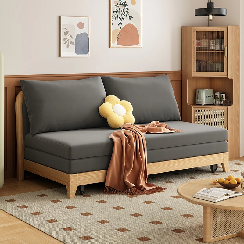 Modern Minimalist Solid Wood Sofa Bed - Foldable Dual-Use for Living Room and Study, Perfect for Small Apartments and Tatami Style, Comfortable for Couples