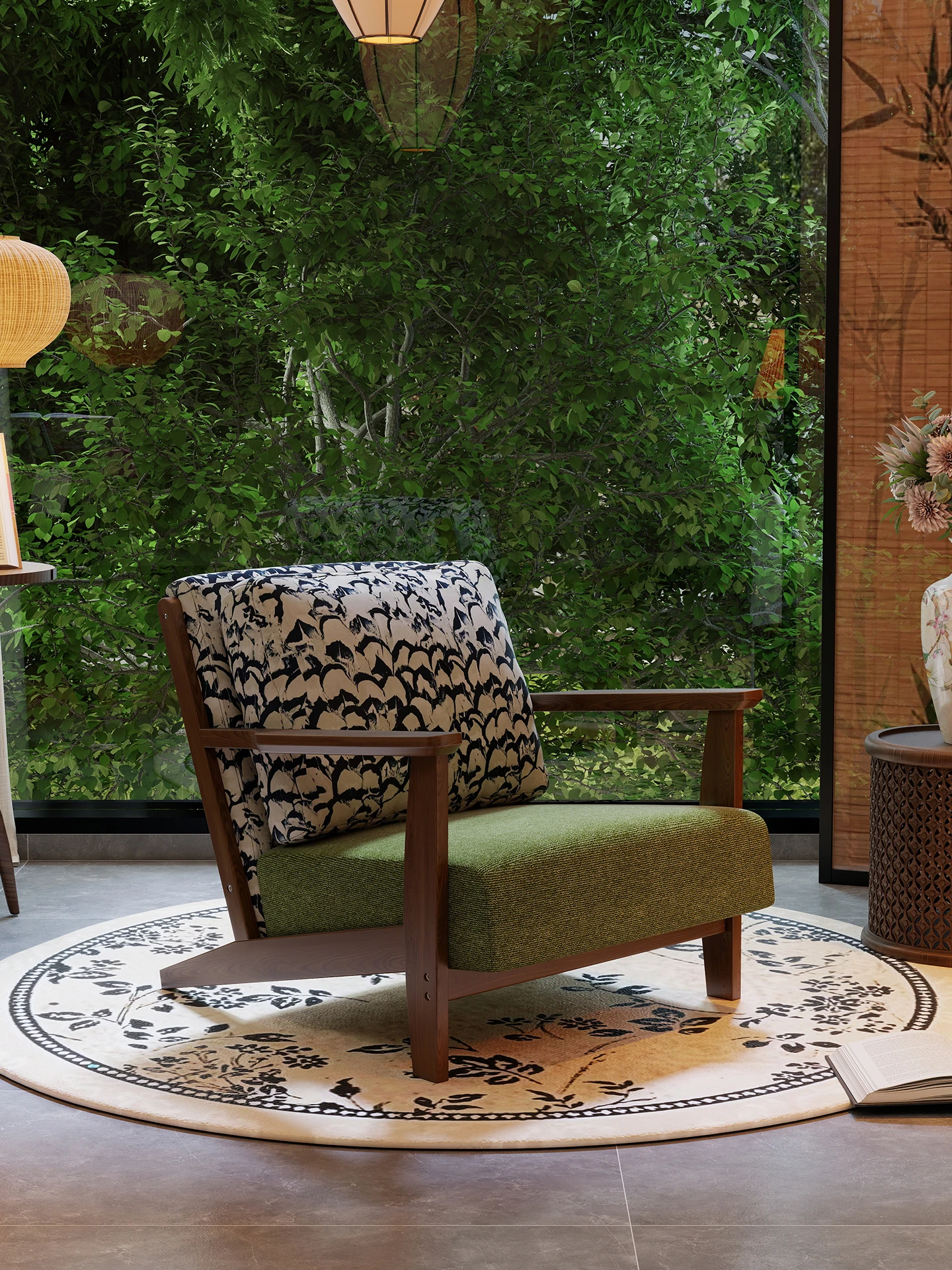 Vintage Designer Single Sofa Chair - Retro Solid Wood Lounge Chair for Living Room, Balcony, and Bedroom - Chic Mid-Century Style with Comfortable Backrest