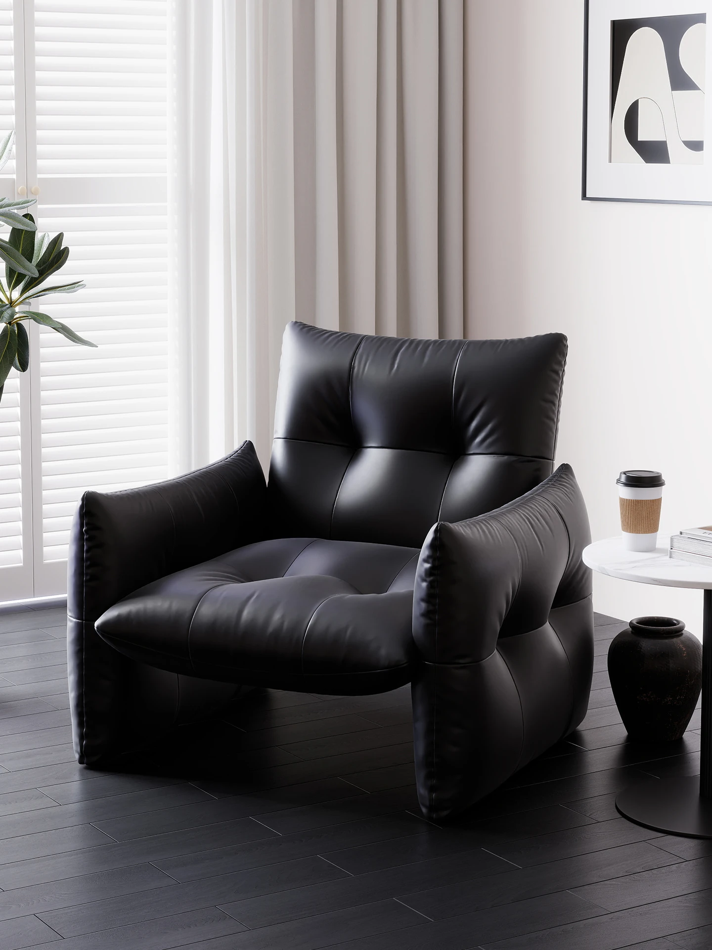 Steroland Genuine Leather Casual Chair - Italian Light Luxury Upholstered Single Sofa with Backrest, Perfect for Cozy Living Rooms and Long Sitting Comfort, Ideal for Relaxation and Leisure