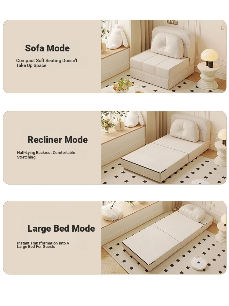 Cloud-Inspired Convertible Sofa Bed - Multifunctional, Space-Saving Design for Small Living Rooms, Modern Minimalist Cream Aesthetic, Trendy and Stylish