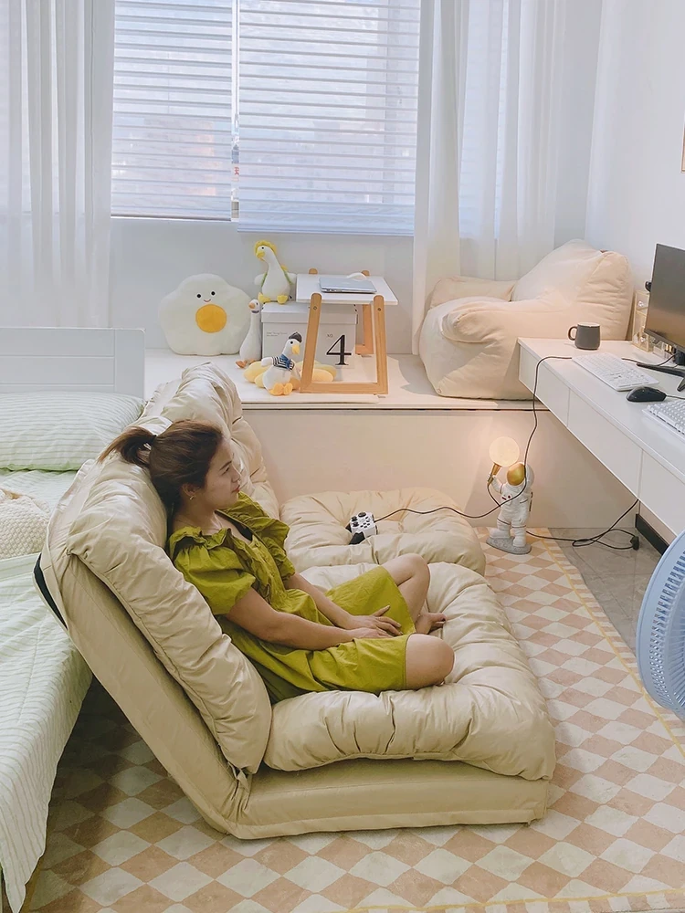 Cozy Folding Tatami Sofa Chair for Dorm Rooms - Perfect for Girls' Bedrooms, Balconies, and Bay Windows - Space-Saving Design with Backrest for Ultimate Comfort