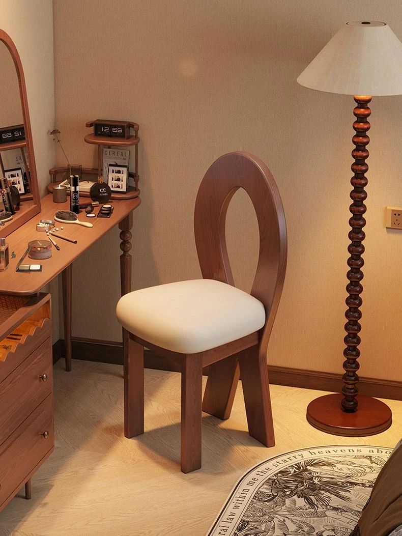 Vintage Solid Wood Dressing Chair - Wabi-Sabi Backrest Stool for Bedroom Vanity, Chic French Makeup Seat, Perfect Blend of Elegance and Comfort