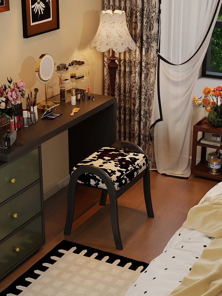 Vintage Solid Wood Makeup Stool for Home - Stylish Dressing Table Chair, Perfect for Bedrooms and Entryways, Ideal for Makeup and Shoe Changing