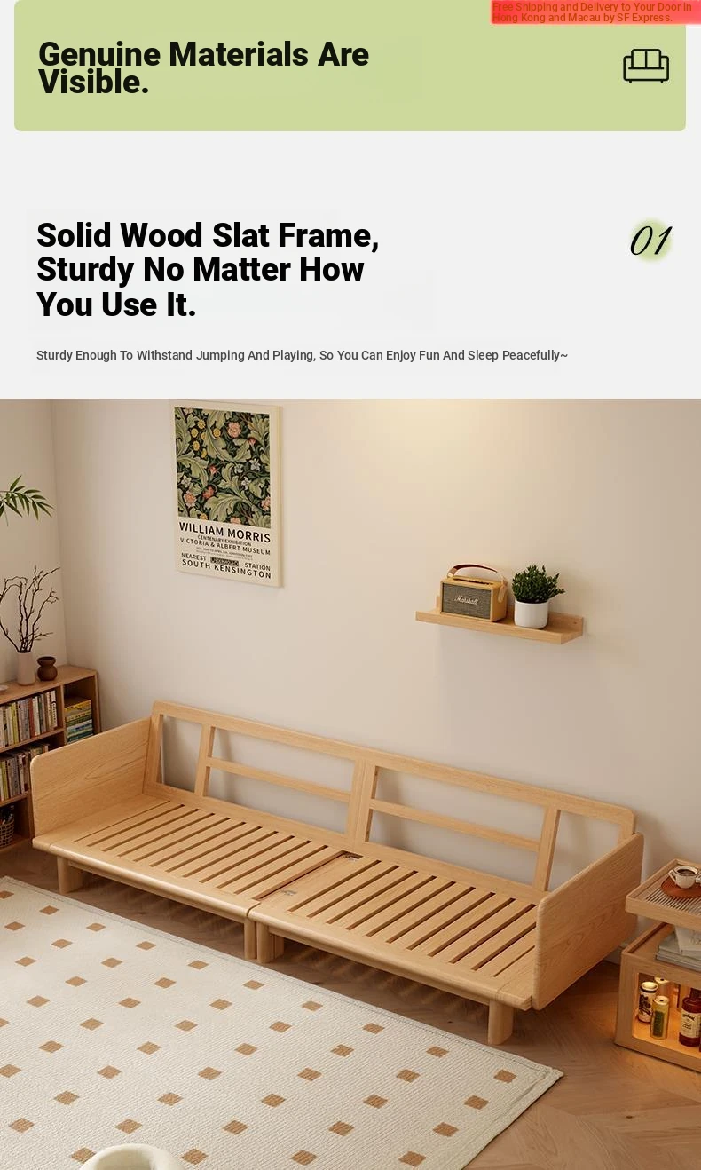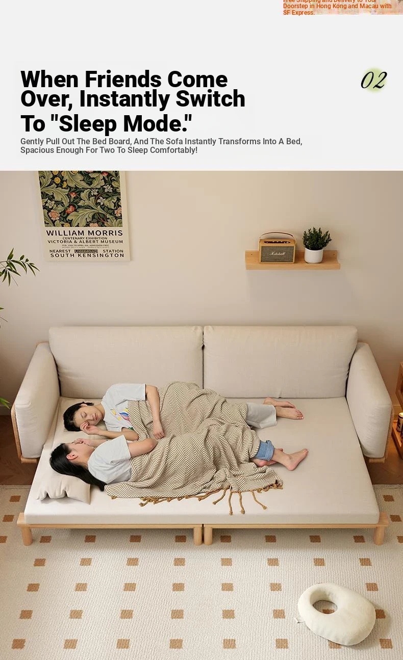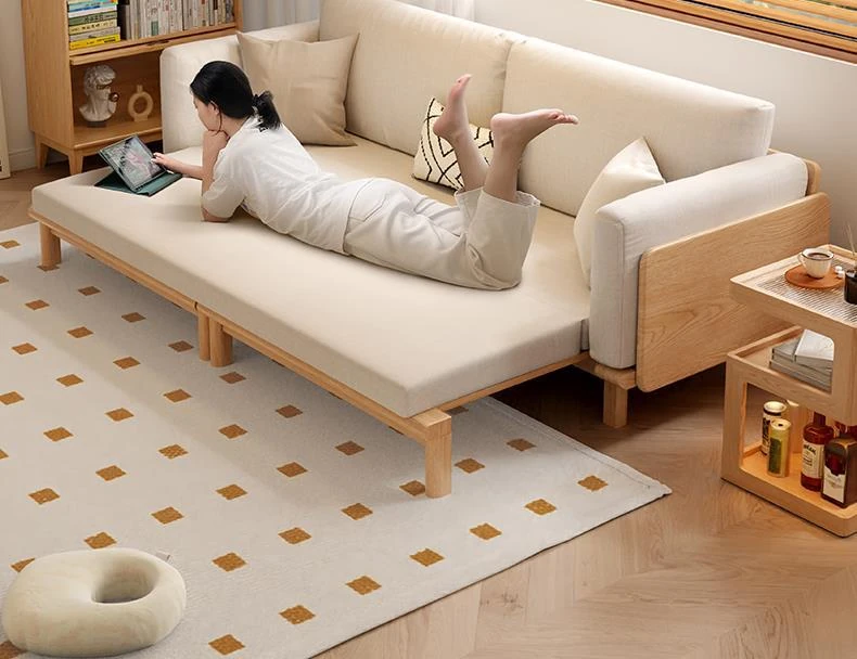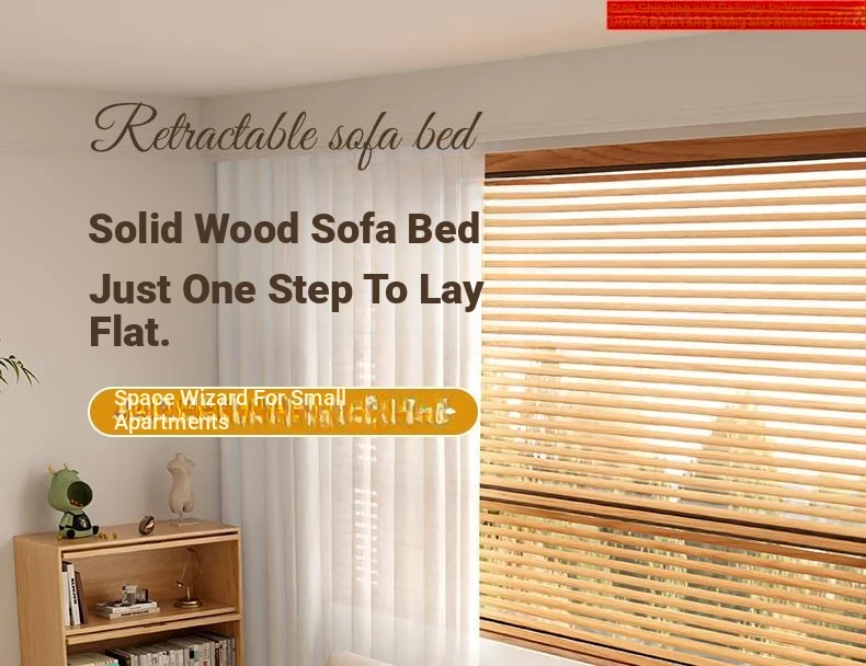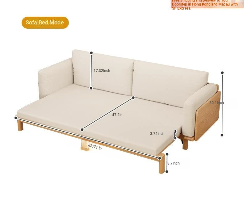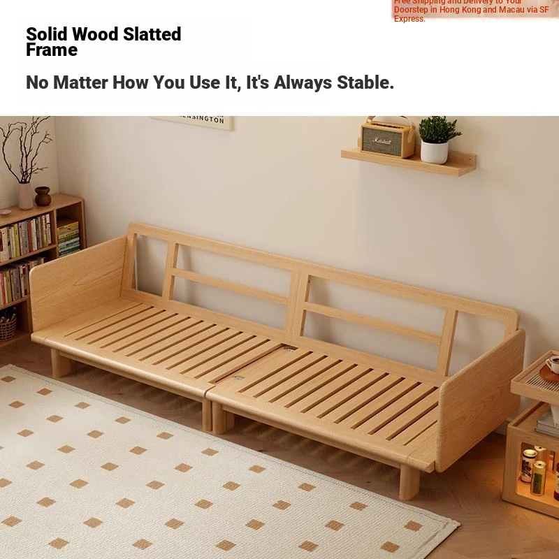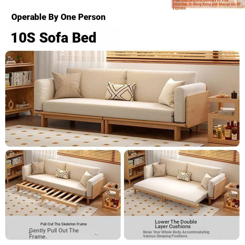"2023 New Hong Kong Style Solid Wood Sofa Bed - Versatile Folding Design, Trendy Pull-Out Function for Your Living Room"