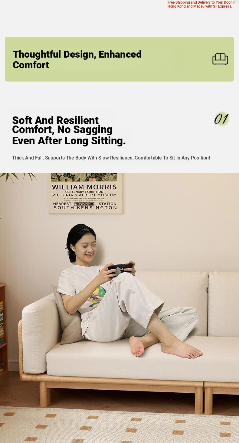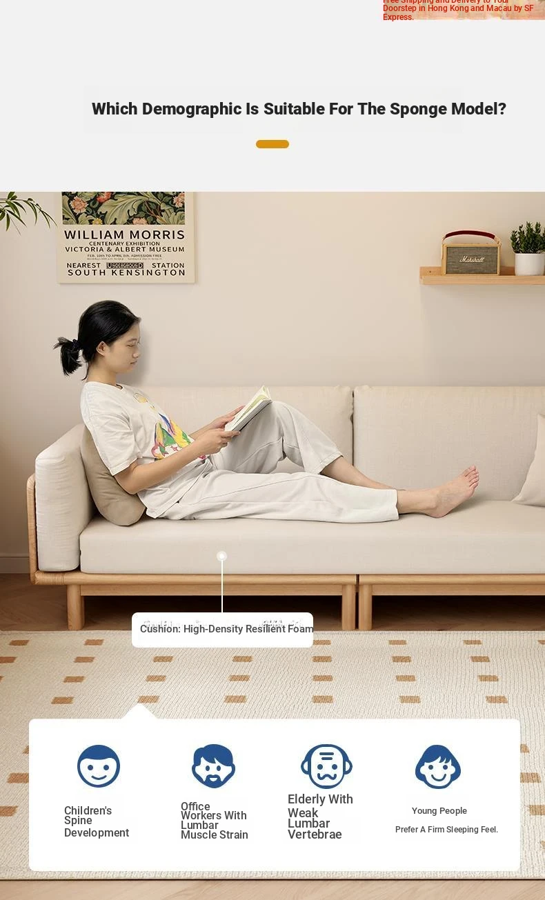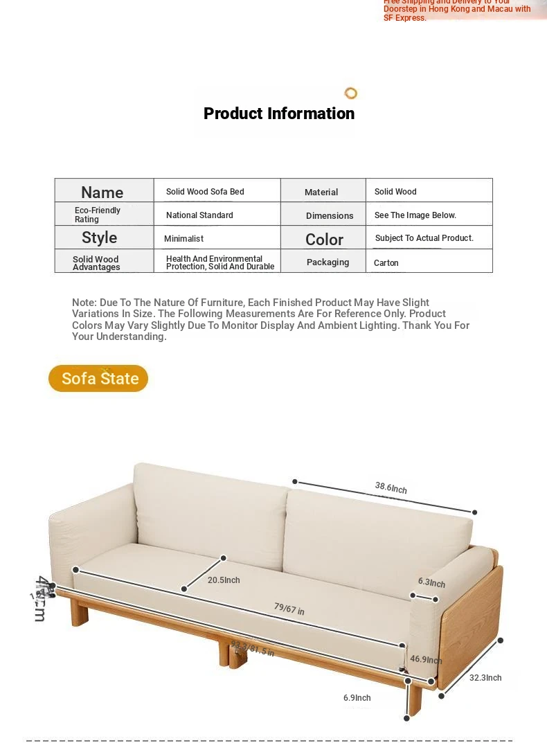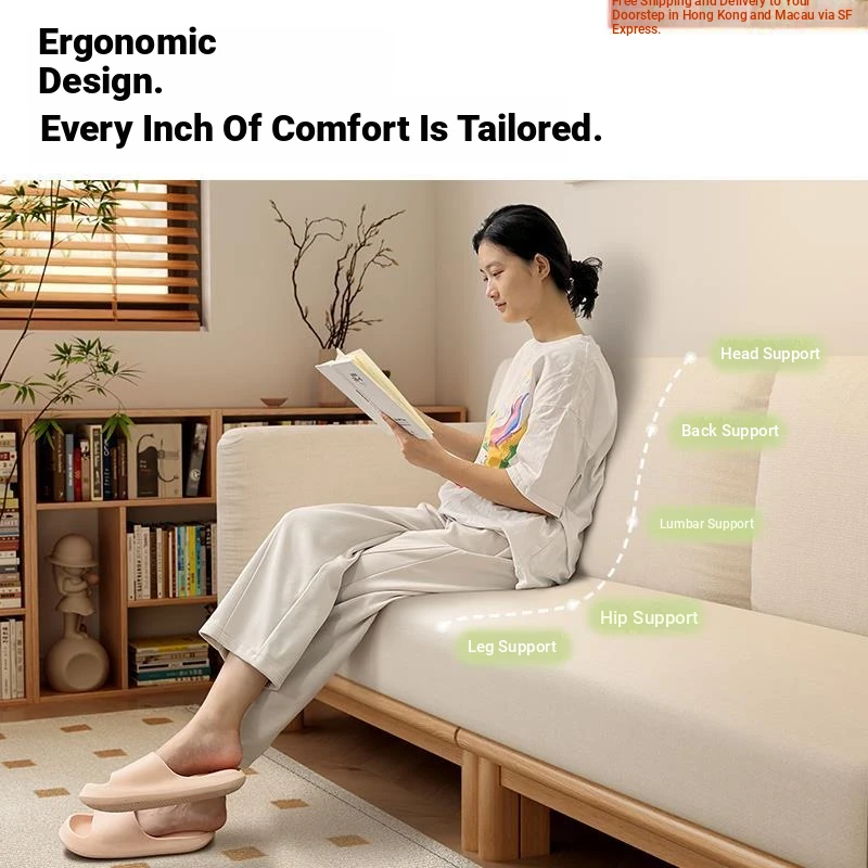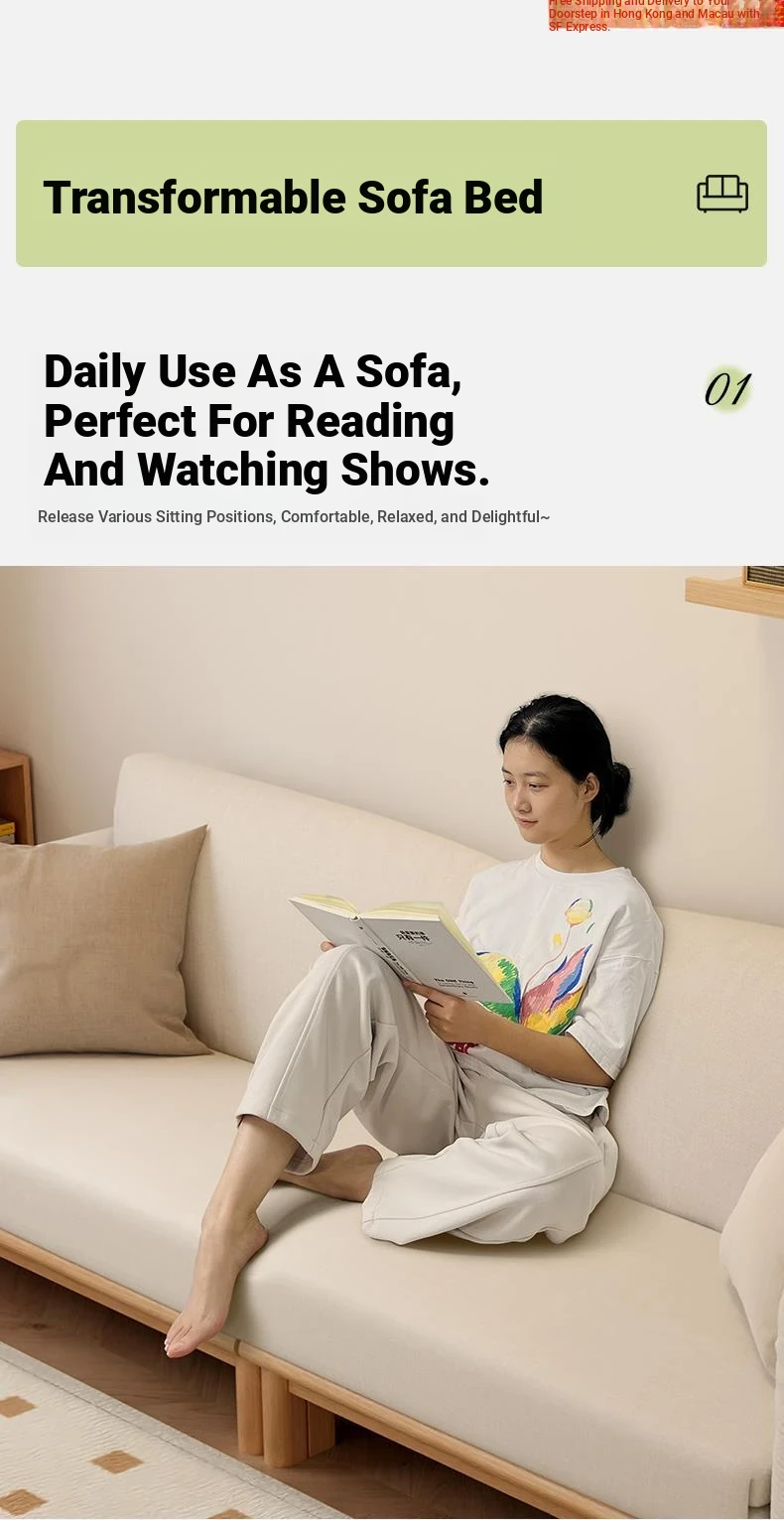 "2023 New Hong Kong Style Solid Wood Sofa Bed - Versatile Folding Design, Trendy Pull-Out Function for Your Living Room"