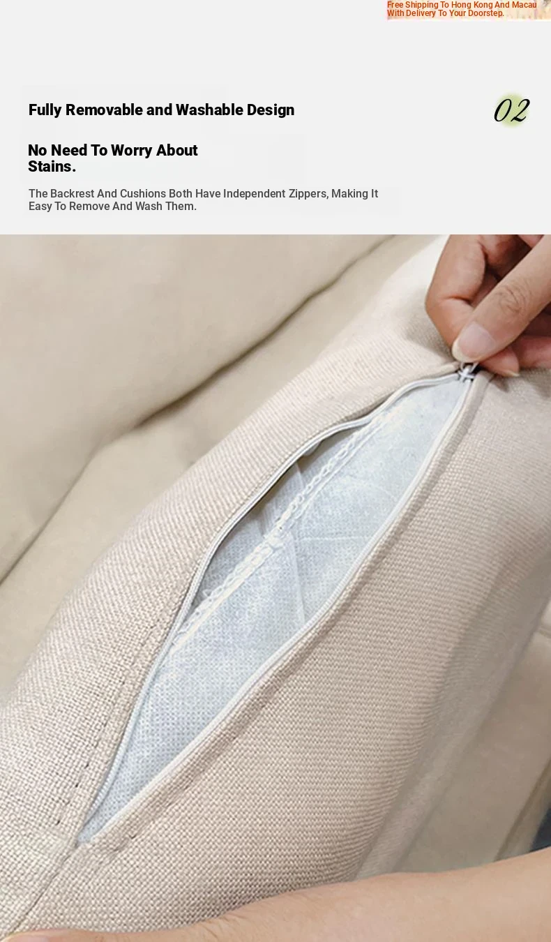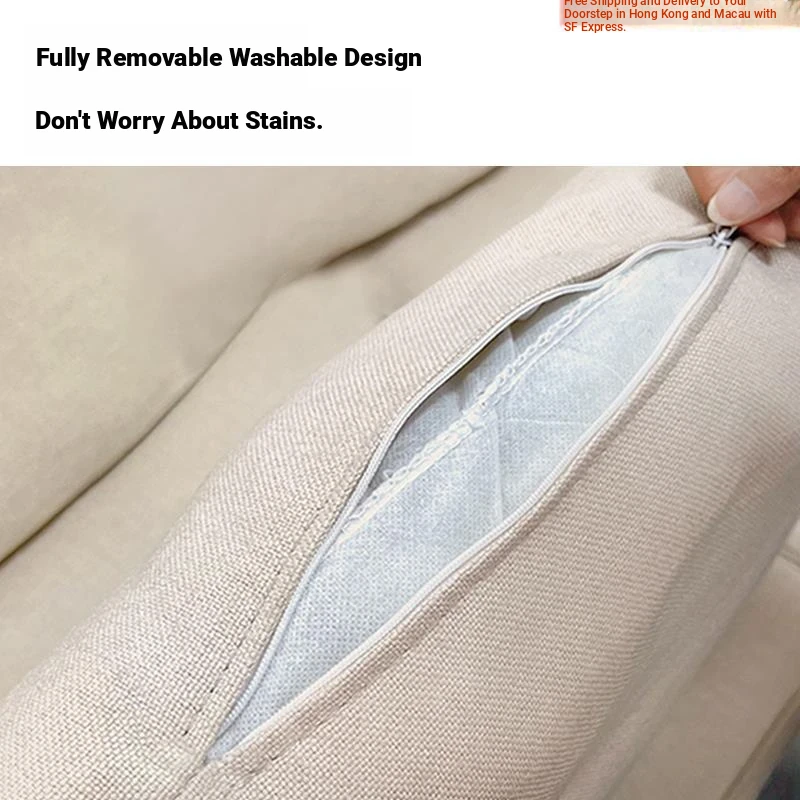 [Wash-free technology cloth] 93.31in three-person creamy-white