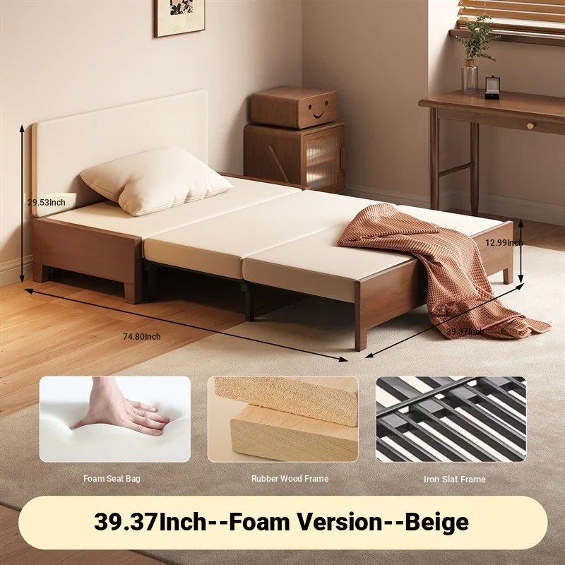 [39.37 in single] walnut color-creamy-white sponge without storage