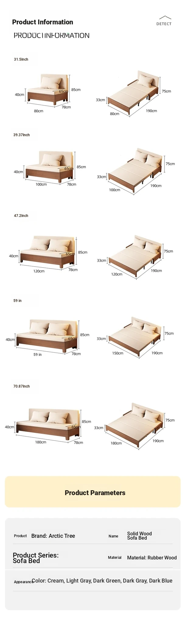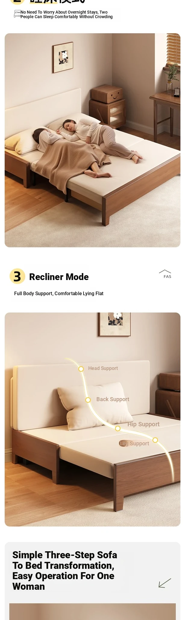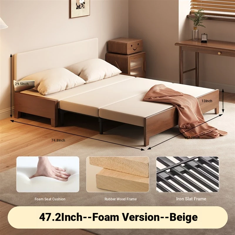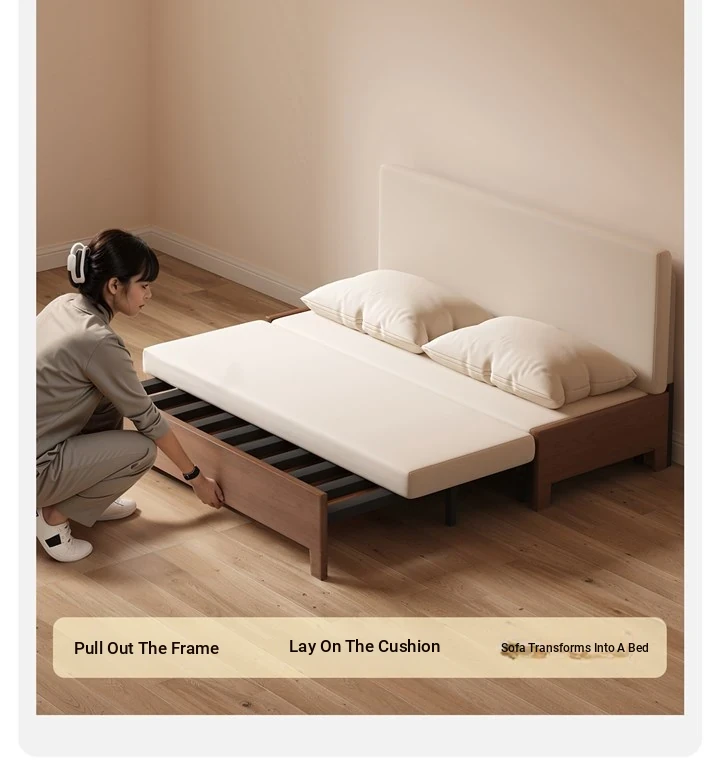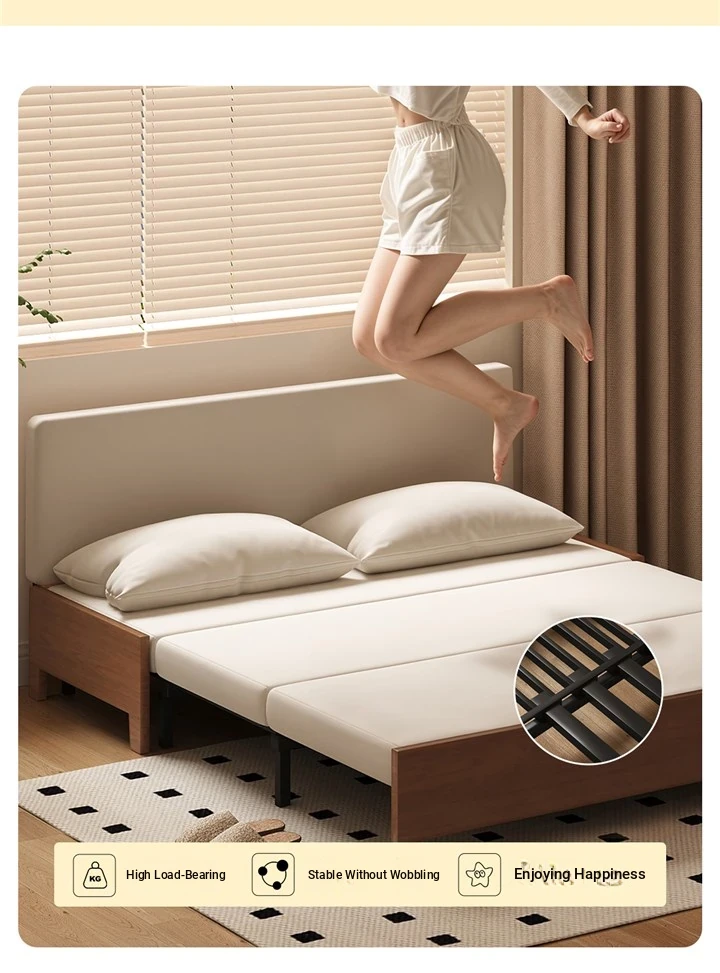 2024 New Compact Convertible Sofa Bed - Versatile 1.5m Double Sofa for Small Living Rooms, Space-Saving Design with Solid Wood Frame