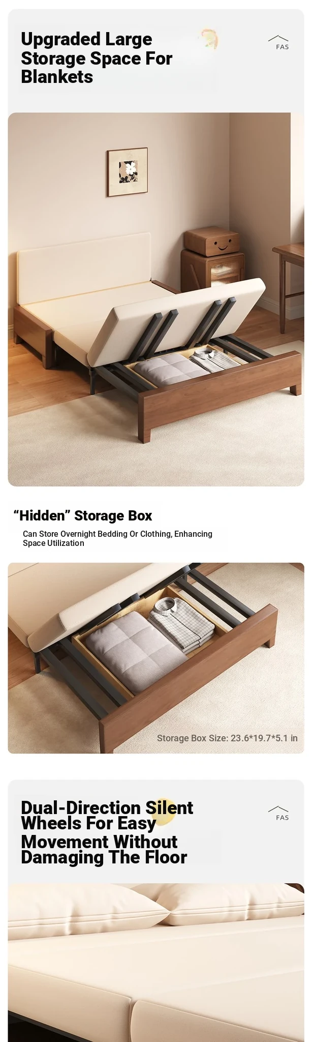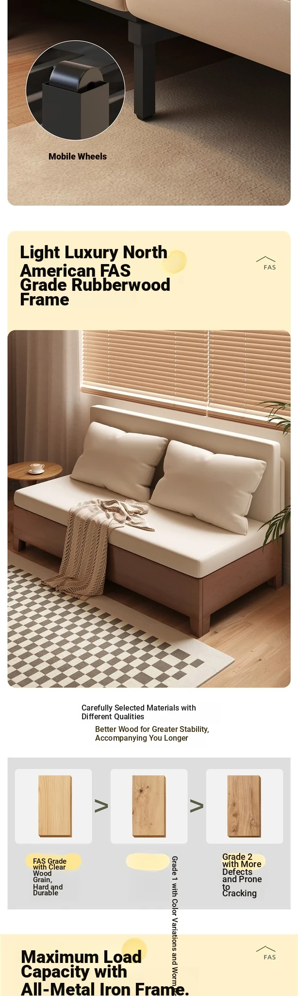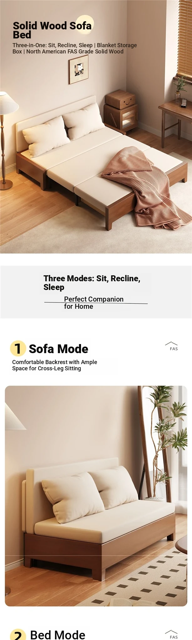2024 New Compact Convertible Sofa Bed - Versatile 1.5m Double Sofa for Small Living Rooms, Space-Saving Design with Solid Wood Frame