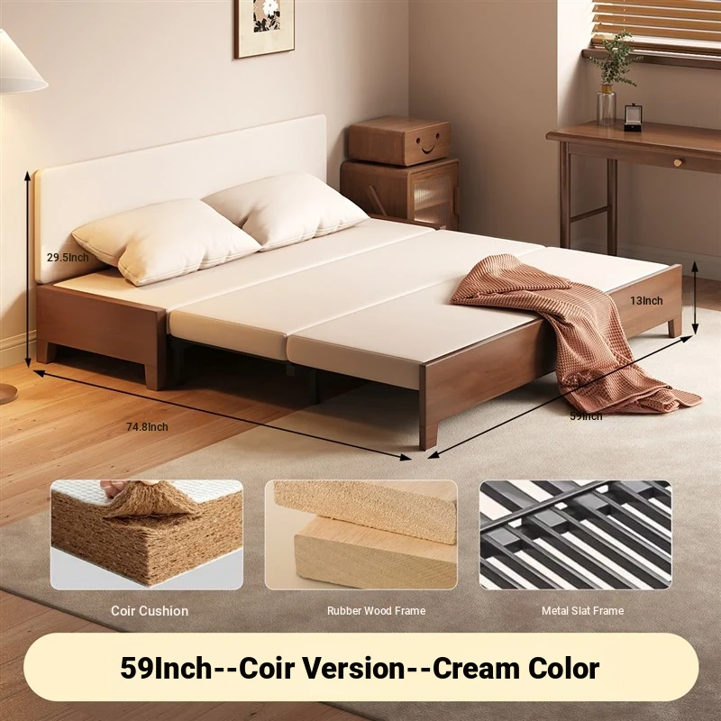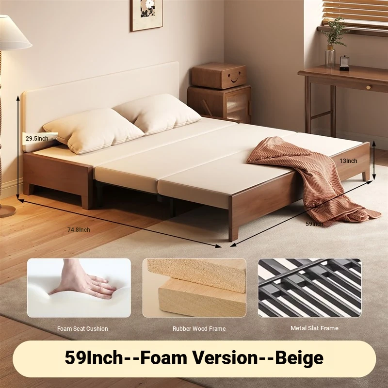 [59.06 in Double bit] walnut color-creamy-white sponge without storage