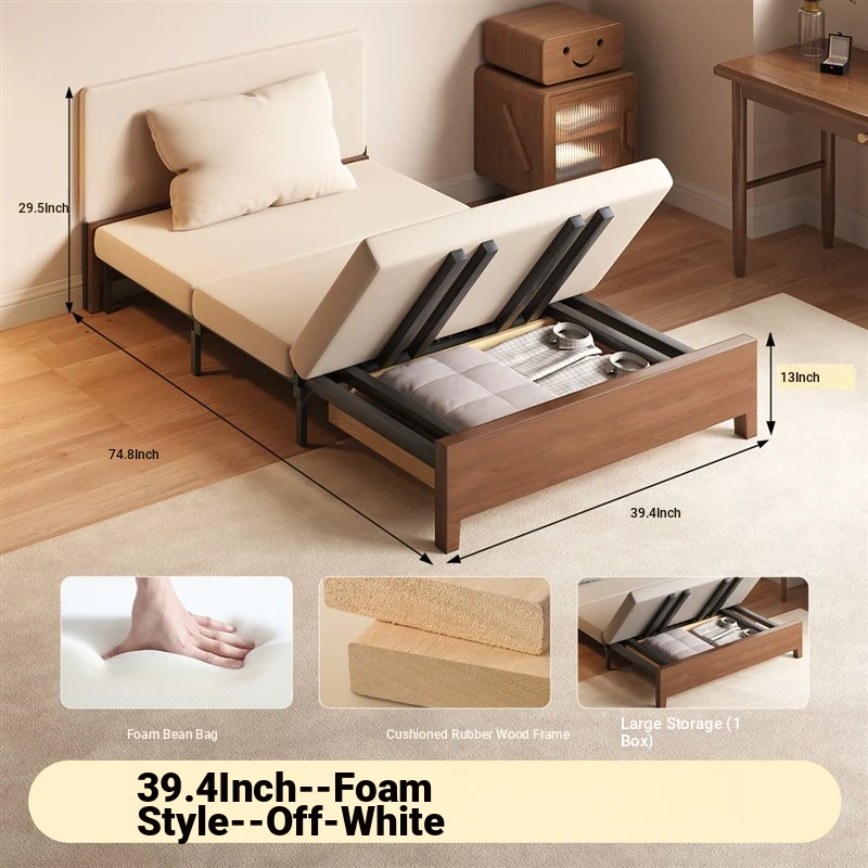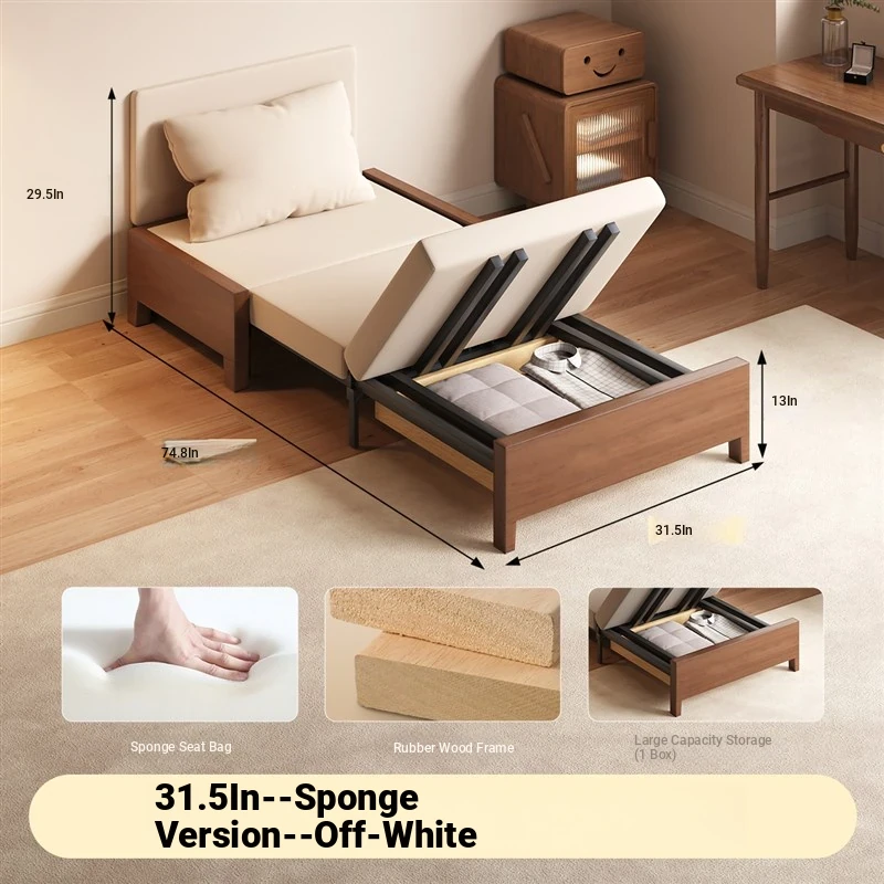 [31.50 in Single] Walnut-creamy-white Sponge with Storage