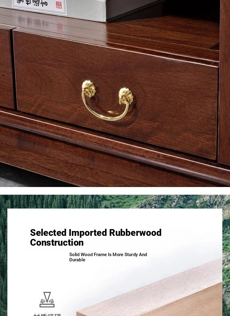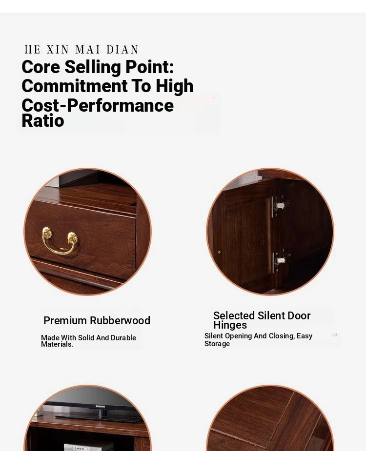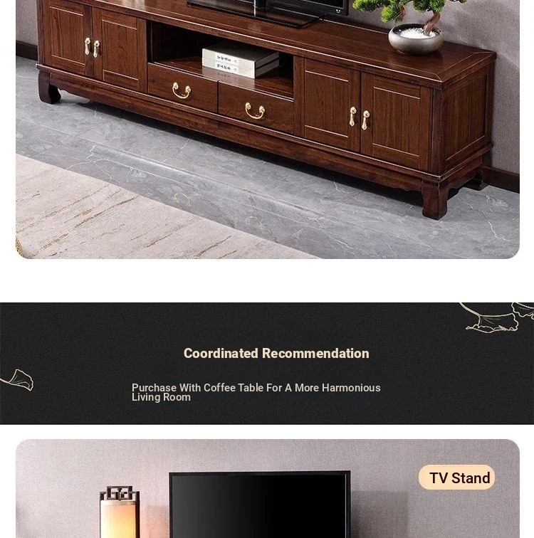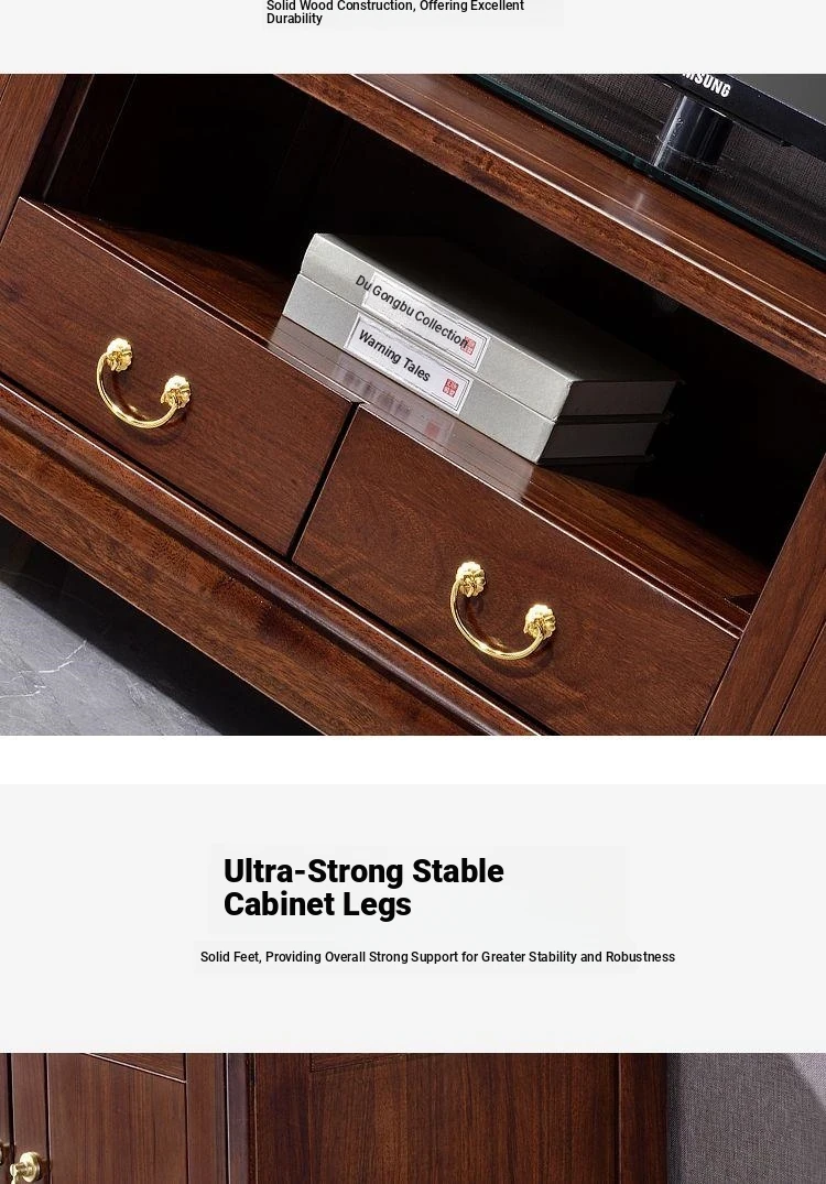 2024 New High-End Minimalist Solid Wood TV Cabinet for Living Room - Rubber Wood Storage Unit, Stylish All-in-One Design for Home Organization