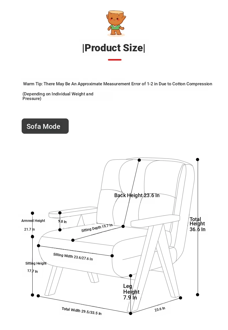 33.46in*76.77in sofa bed "meter white cotton and linen]