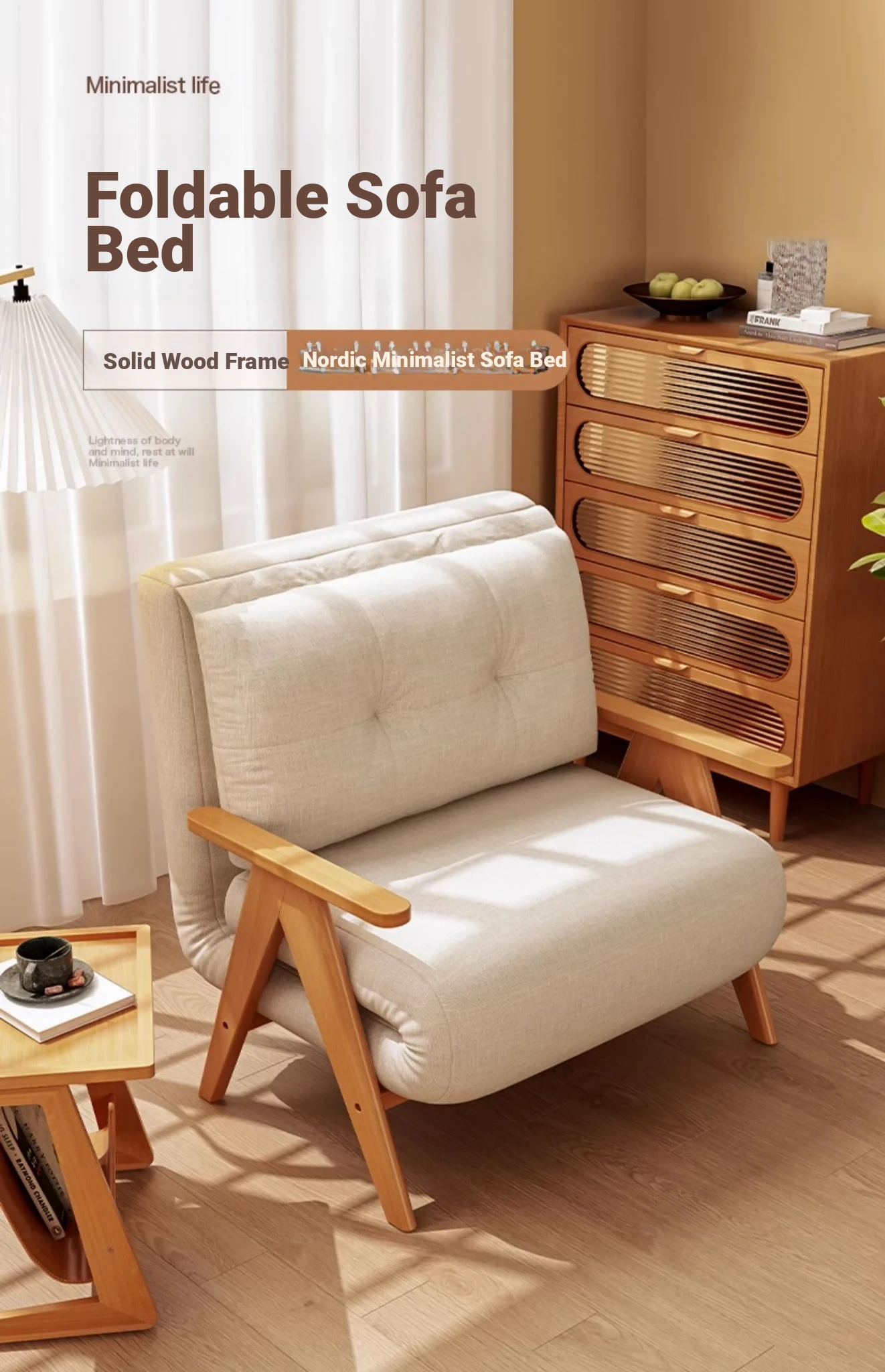 29.53in*76.77in sofa bed "meter white cotton and linen" Walnut