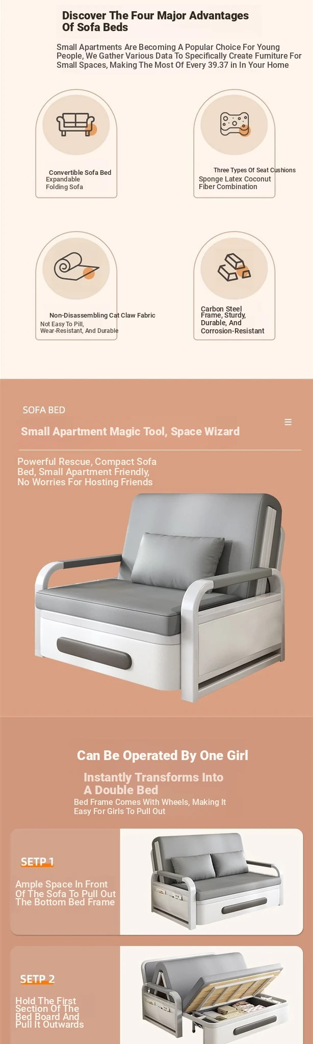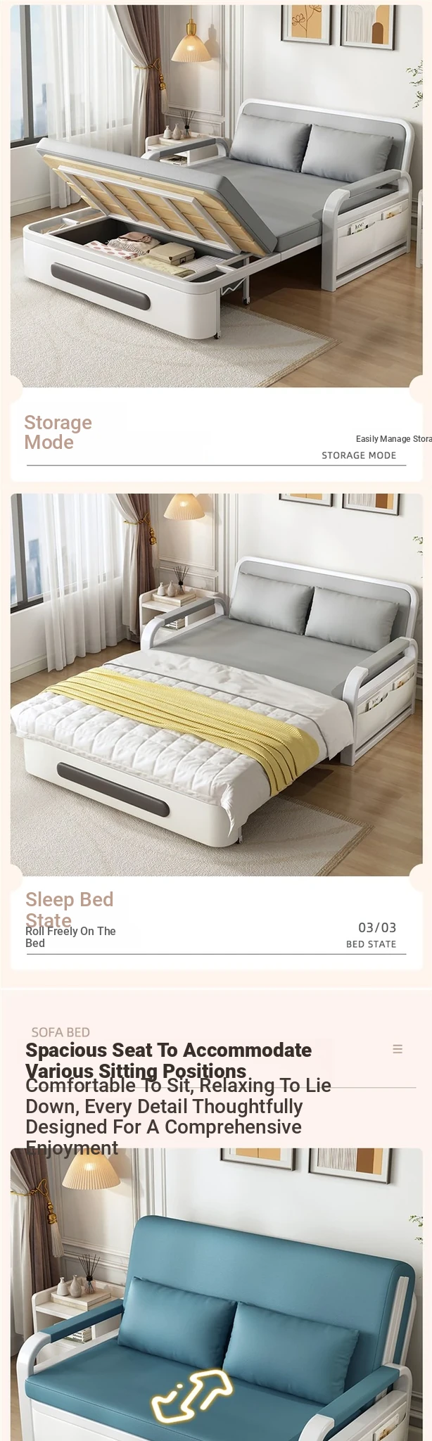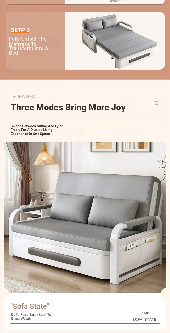 2024 New Trendy Multifunctional Sofa Bed - Foldable Space-Saving Double Bed for Small Apartments and Balconies with Storage Solutions