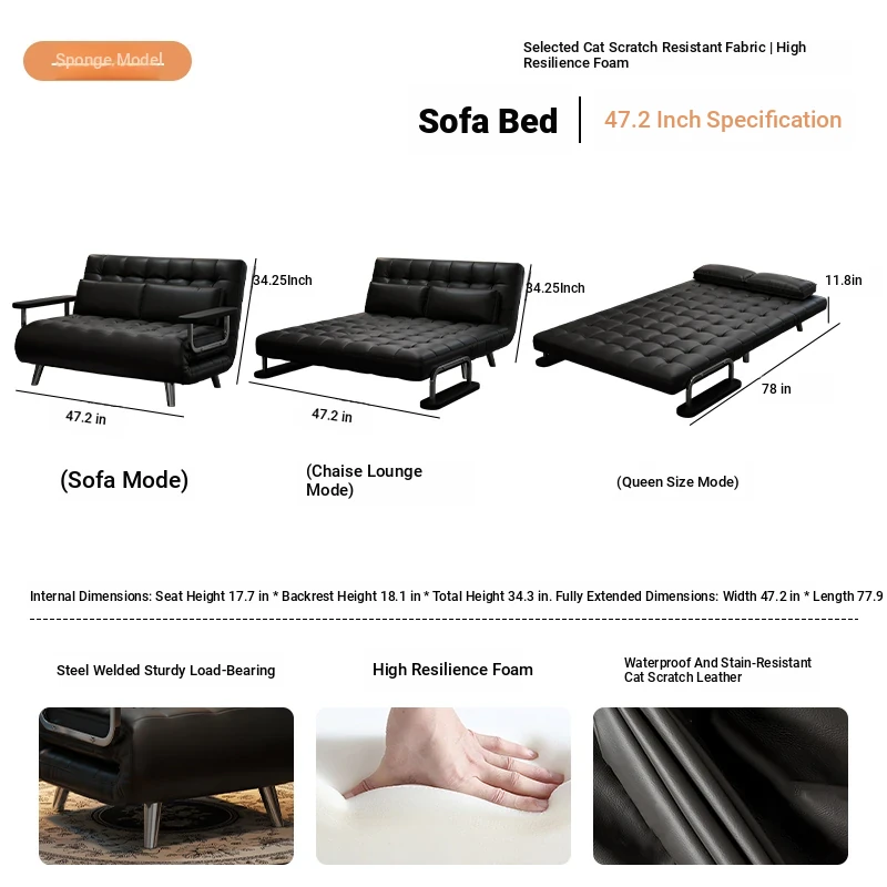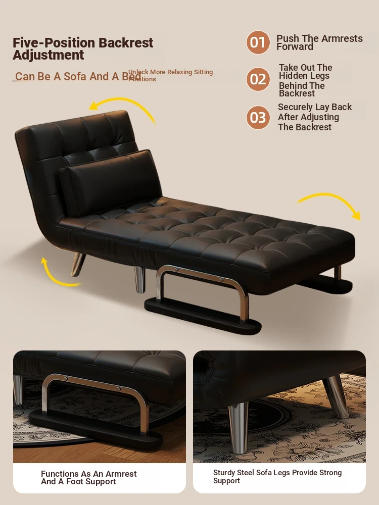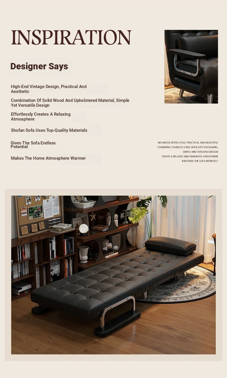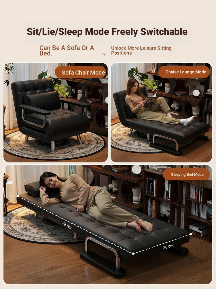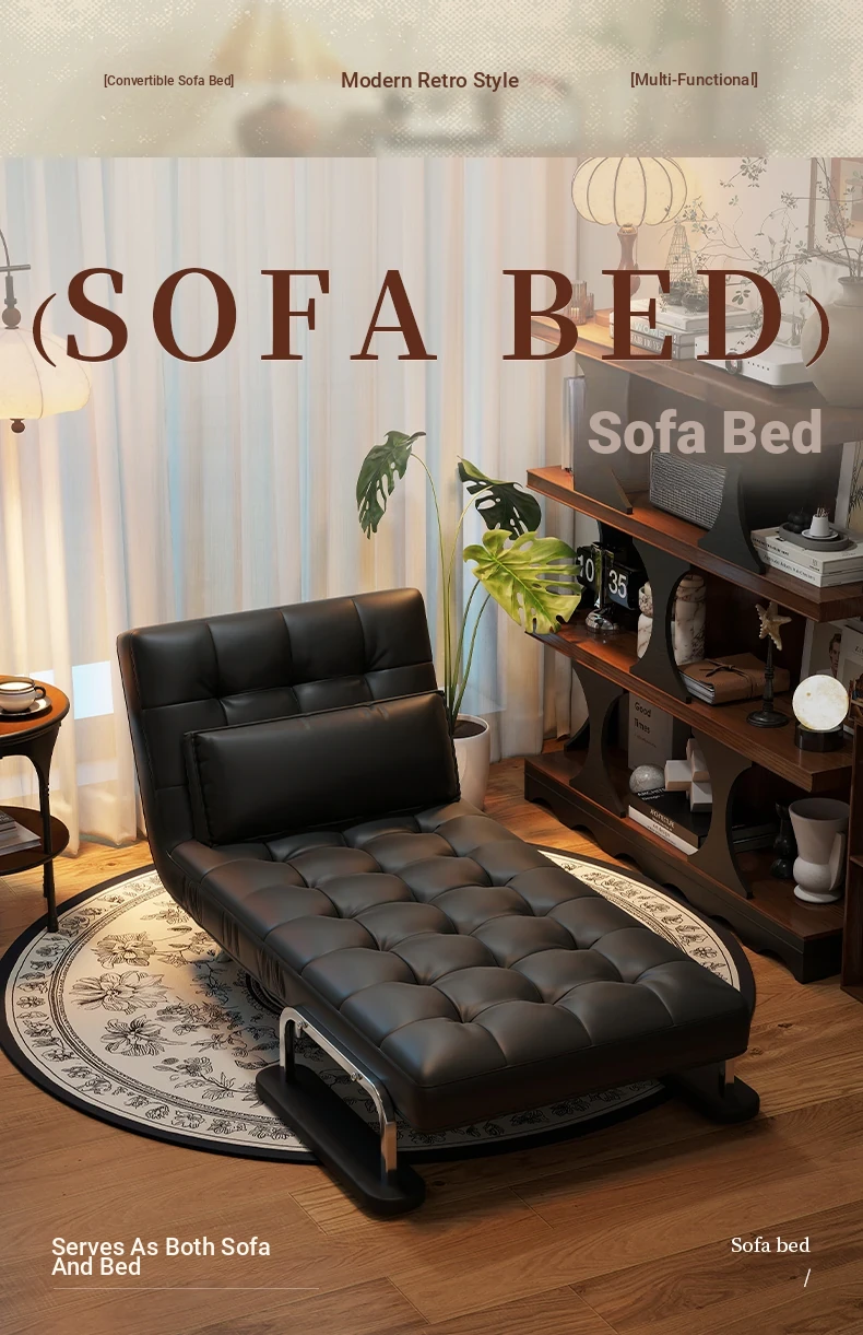 2025 New Compact Folding Sofa Bed - Versatile Single Use, Retro Black Design Perfect for Small Spaces, Ideal for Guest Accommodations