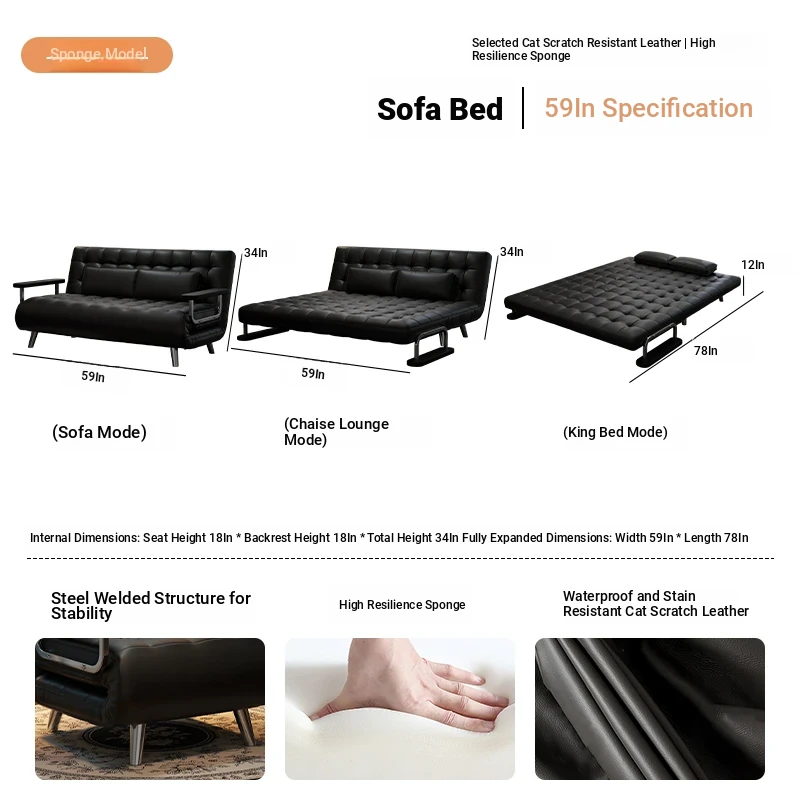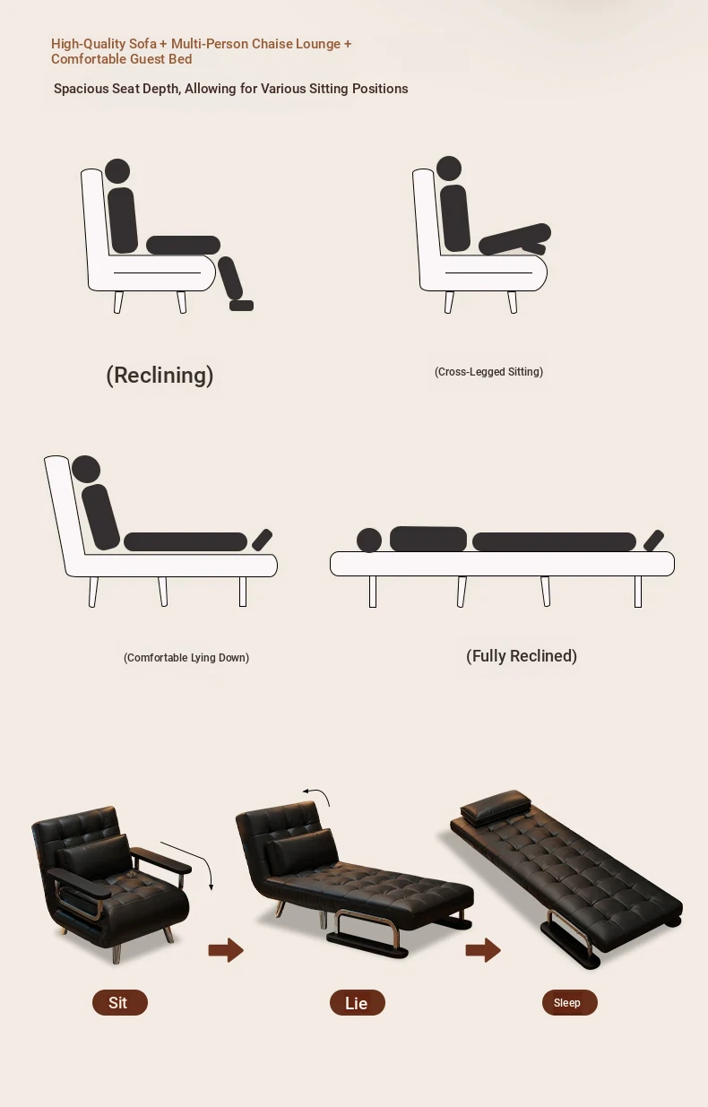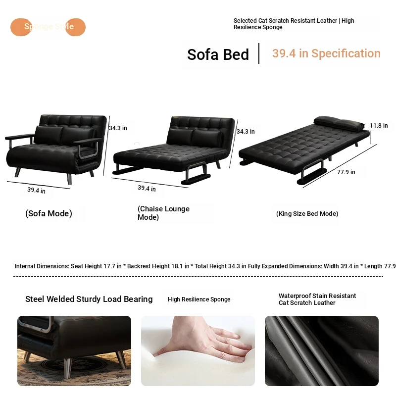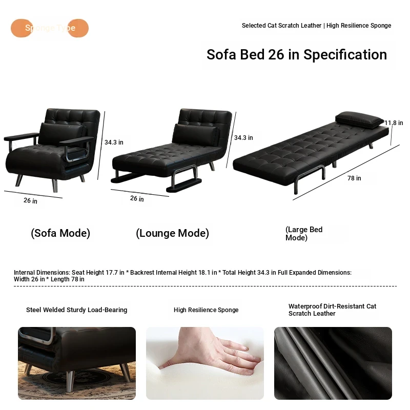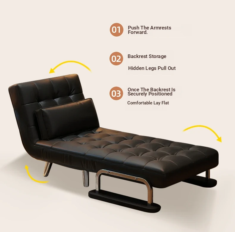 2025 New Compact Folding Sofa Bed - Versatile Single Use, Retro Black Design Perfect for Small Spaces, Ideal for Guest Accommodations