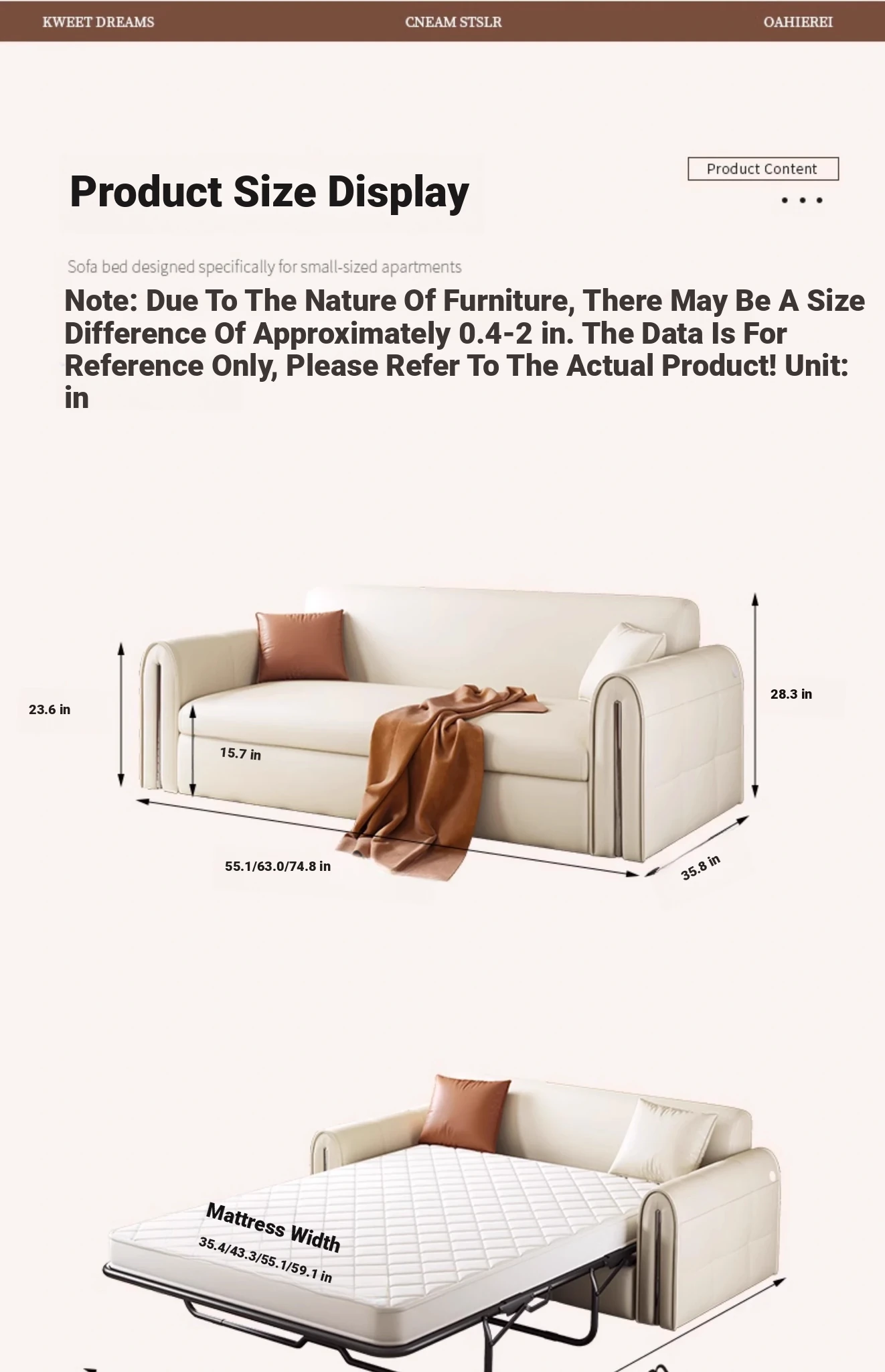 62.99in high density sponge +0.79in washed latex (Import twisted leather) [with mattress]]