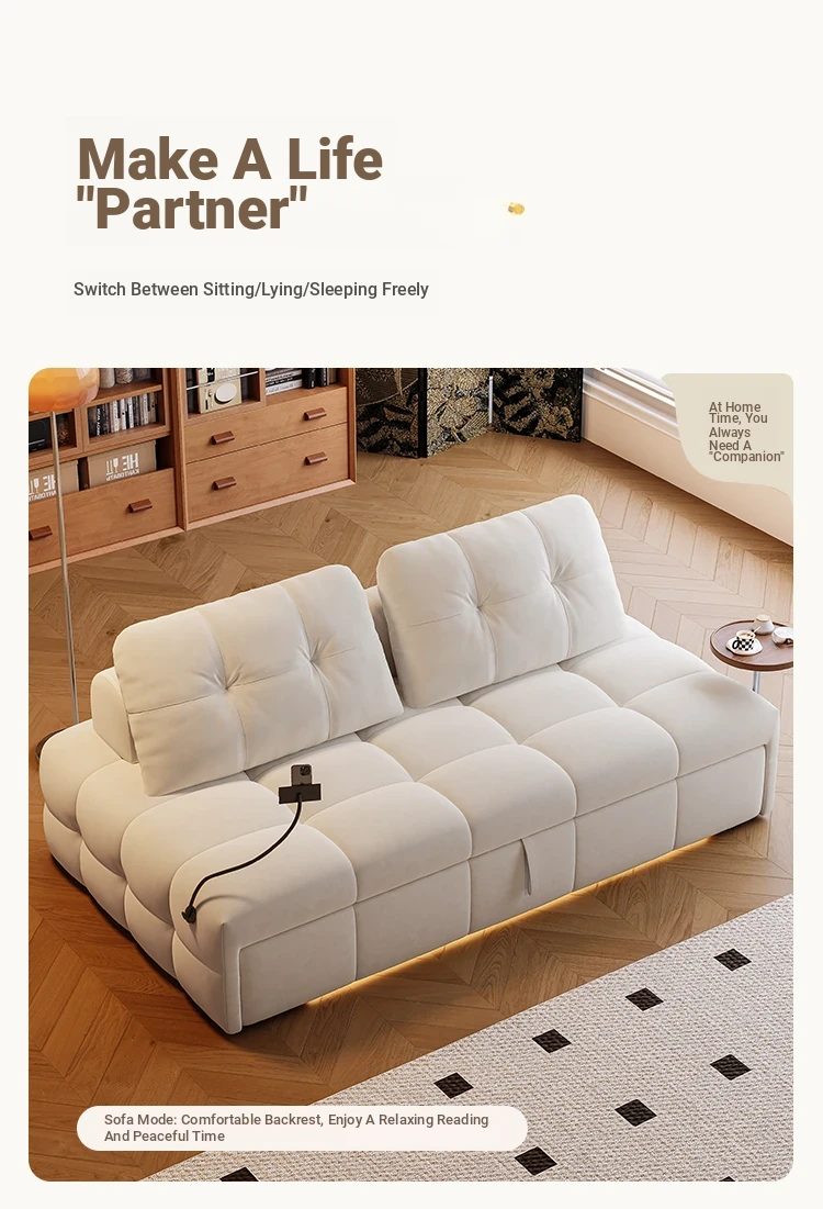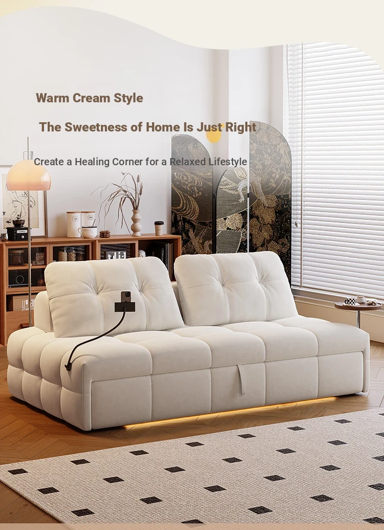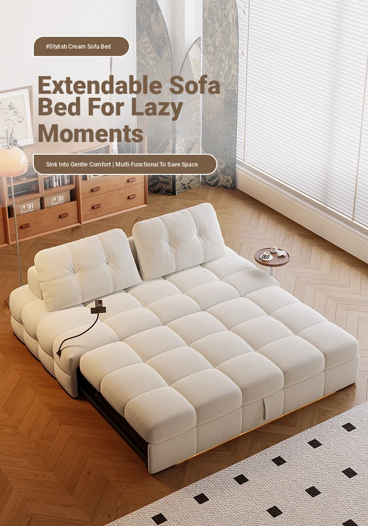 2025 New Cream-Style Foldable Cat Scratch Fabric Sofa Bed – Multi-Functional Pull-Out Bed for Small Living Spaces, Perfect for Your Cozy Lounge!