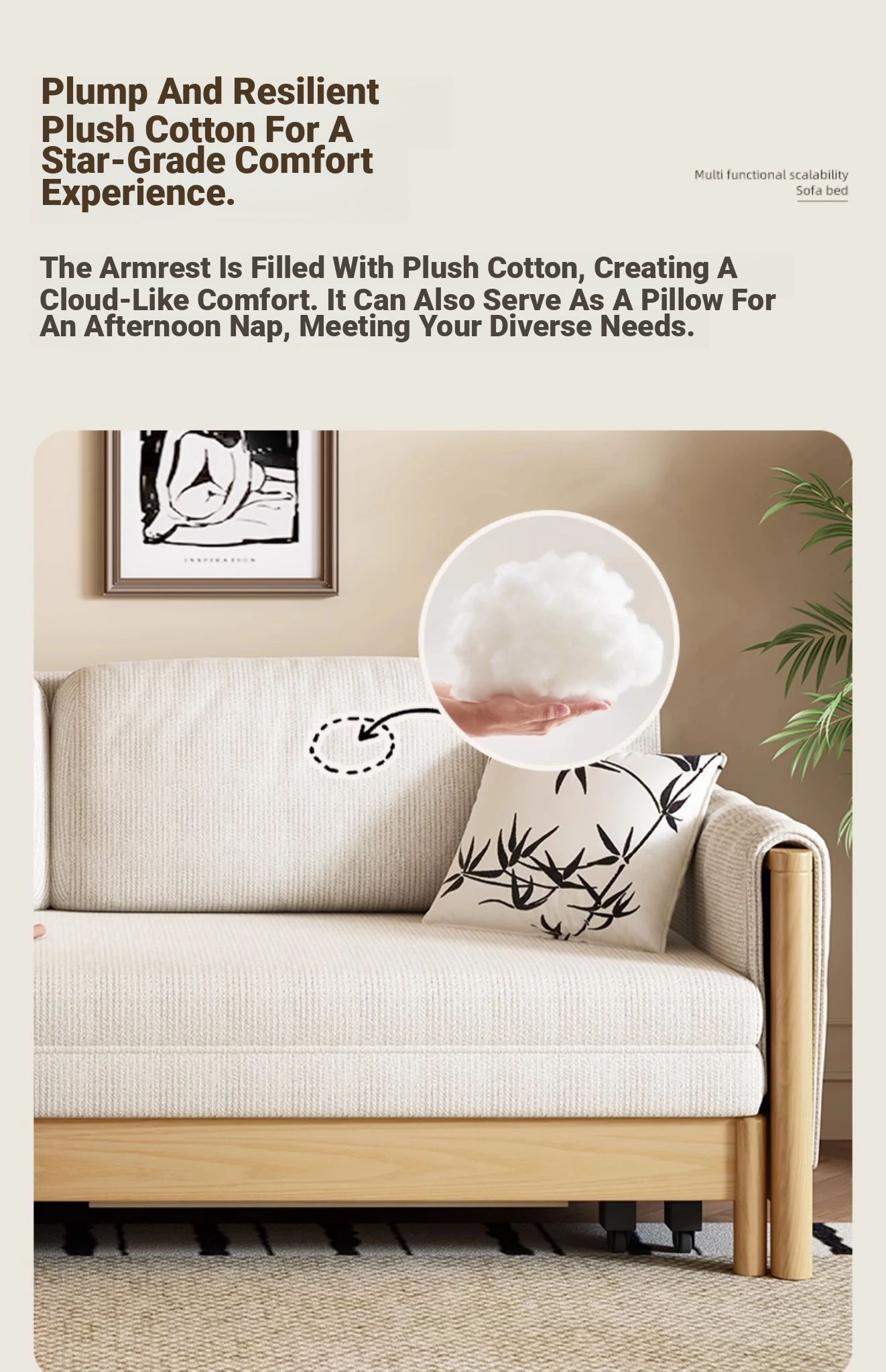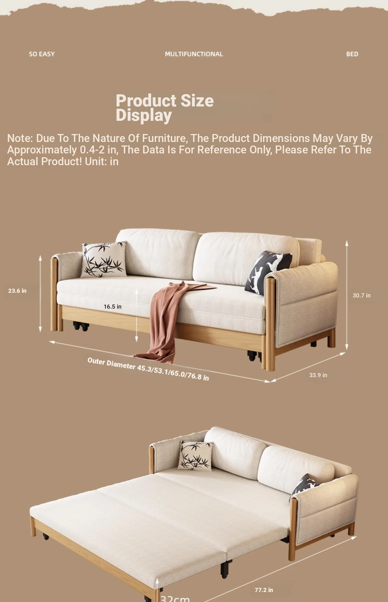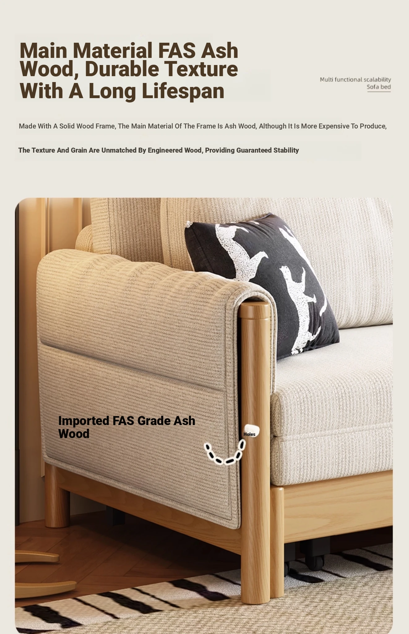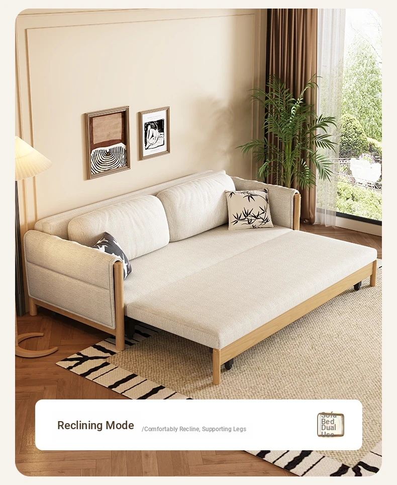 2025 New Nordic Solid Wood Sofa Bed - Foldable, Space-Saving, Double-Use for Small Living Rooms, Trendy Design for Two People