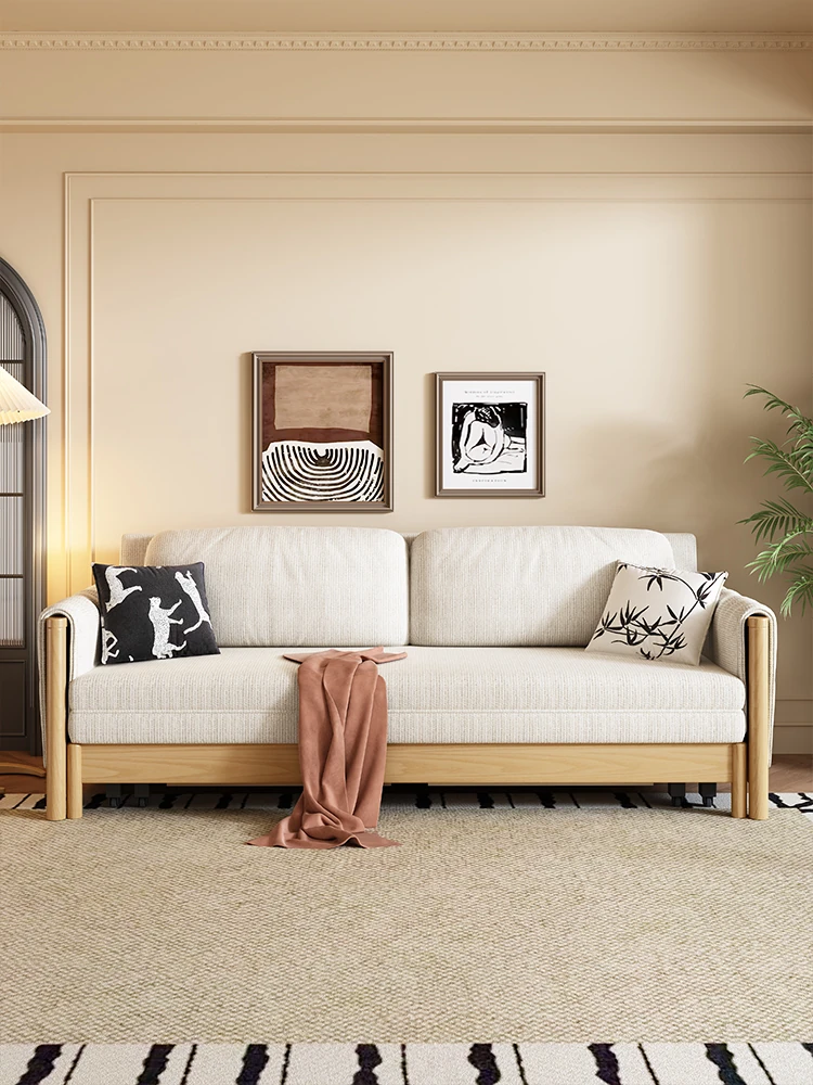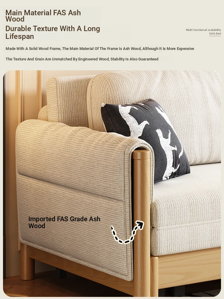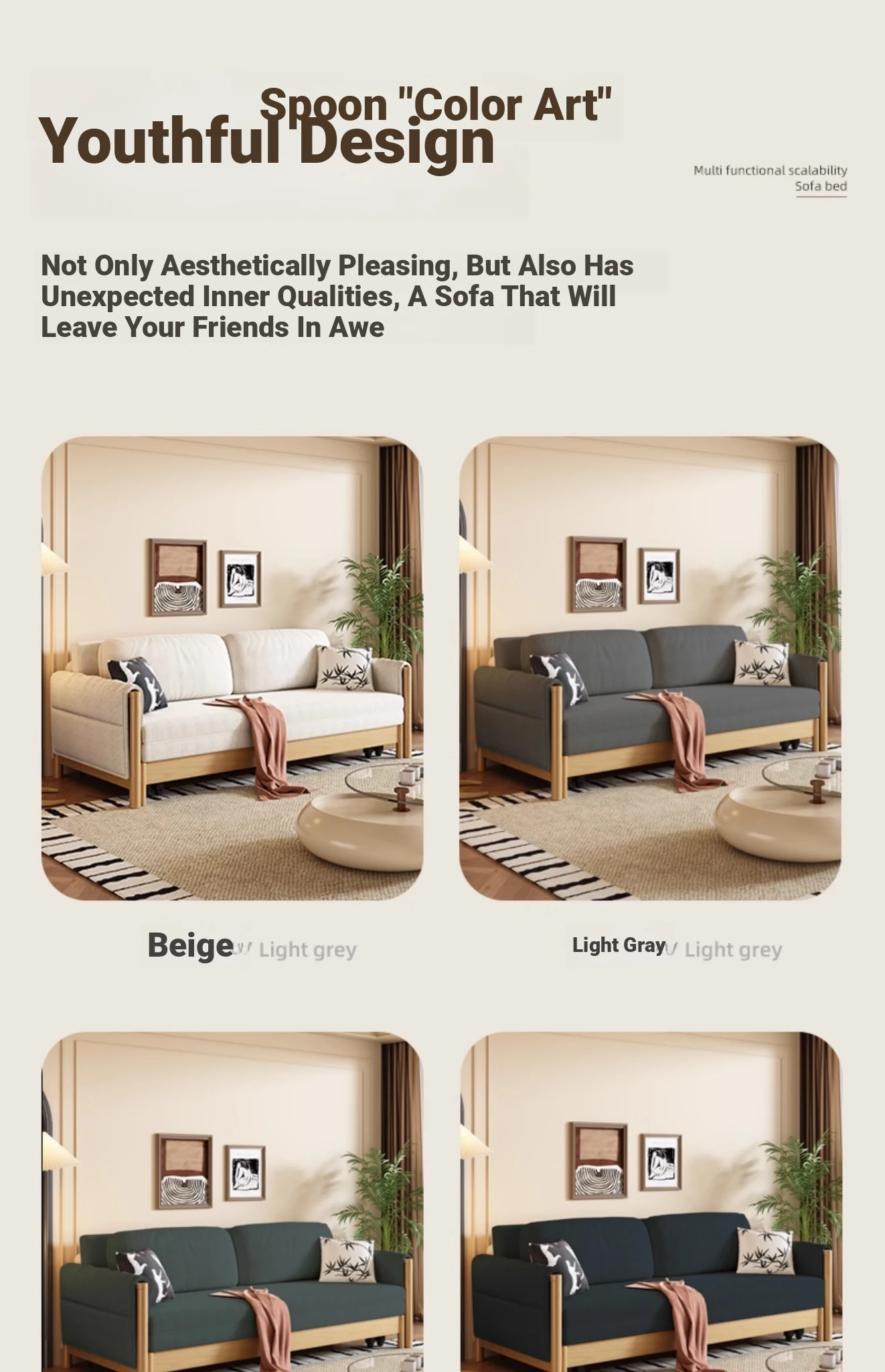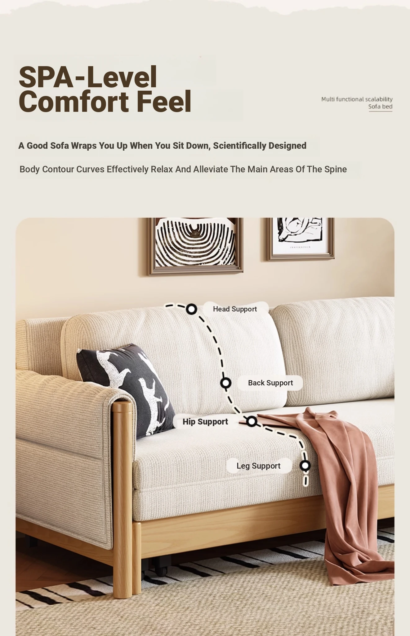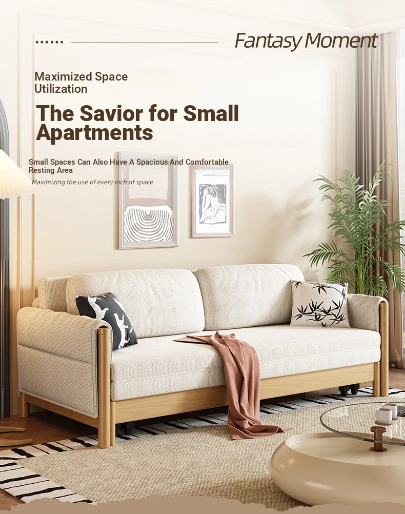 2025 New Nordic Solid Wood Sofa Bed - Foldable, Space-Saving, Double-Use for Small Living Rooms, Trendy Design for Two People