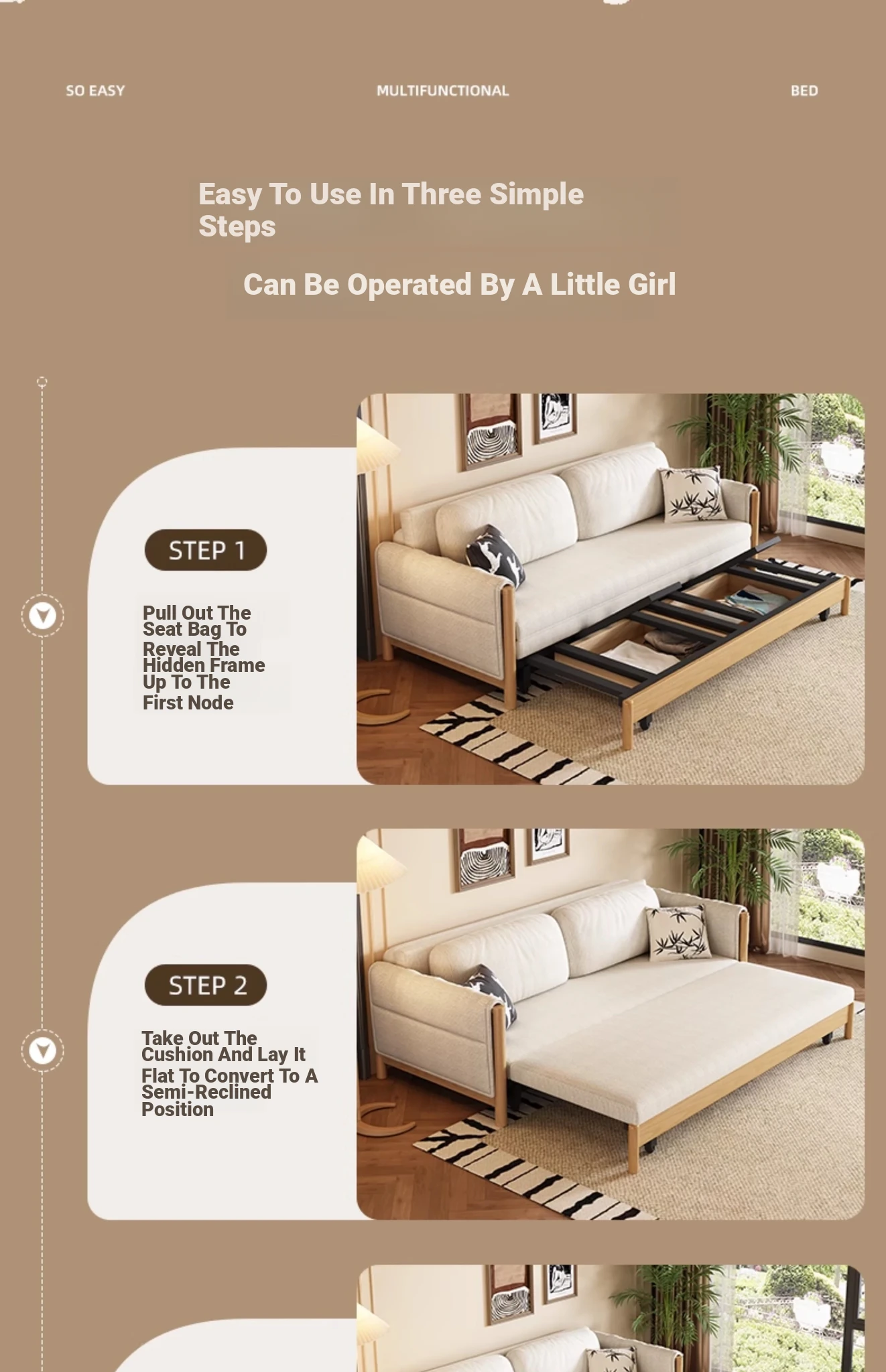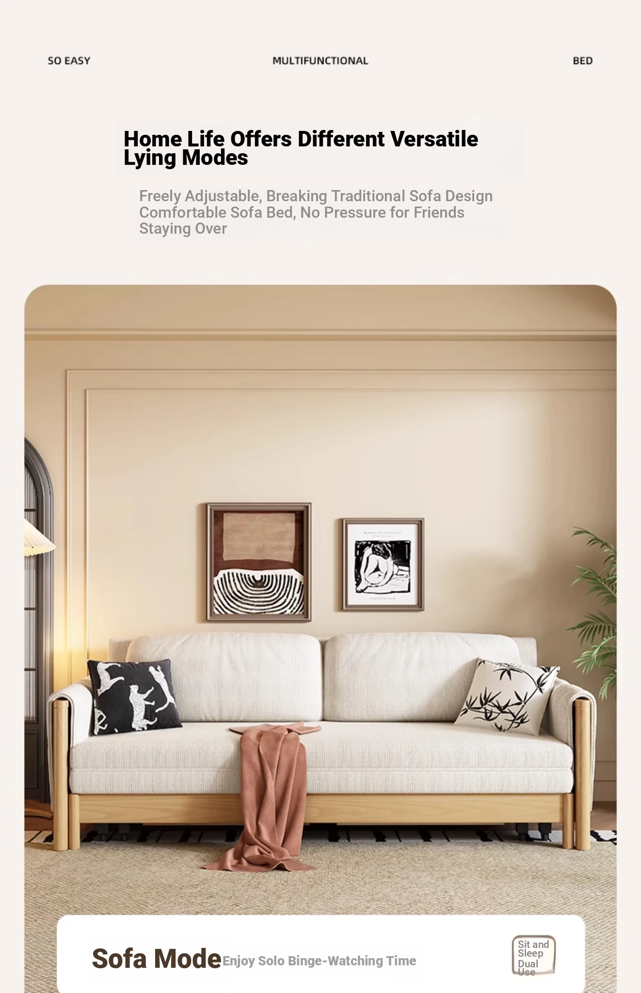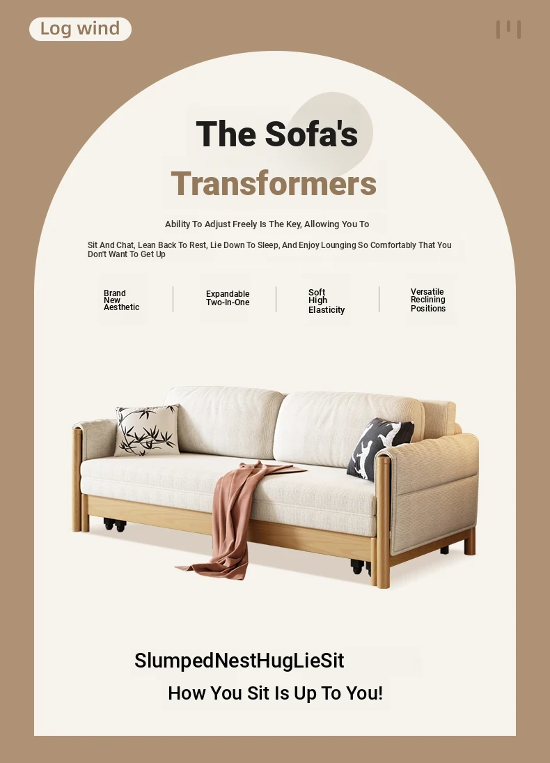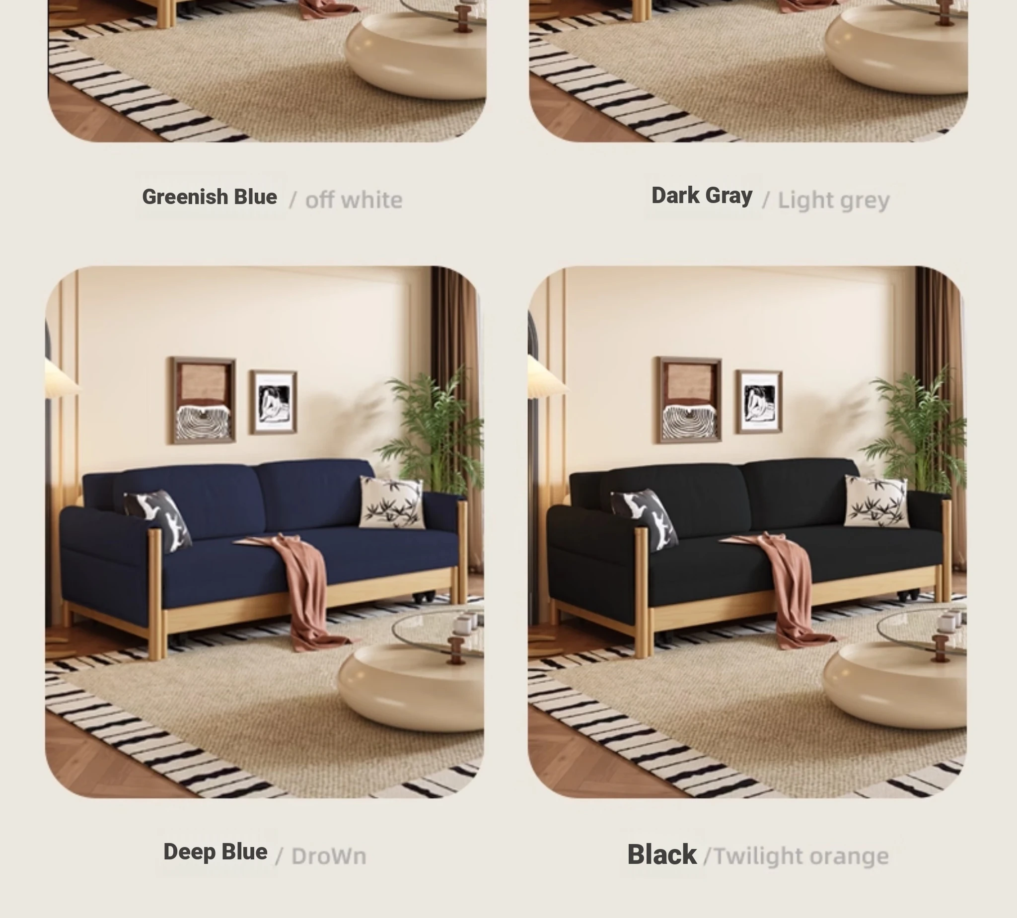 2025 New Nordic Solid Wood Sofa Bed - Foldable, Space-Saving, Double-Use for Small Living Rooms, Trendy Design for Two People